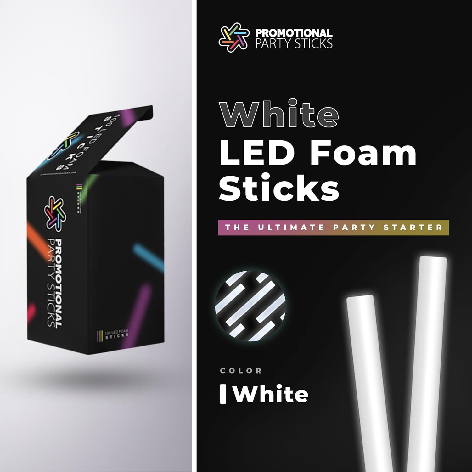 Foam Glow Sticks Bulk - 100 White Foam Light Up Sticks and LED Foam Sticks - 100 Reusable 16" Light Up Foam Sticks White Foam Glow Sticks for Wedding, Parties, and Dancing