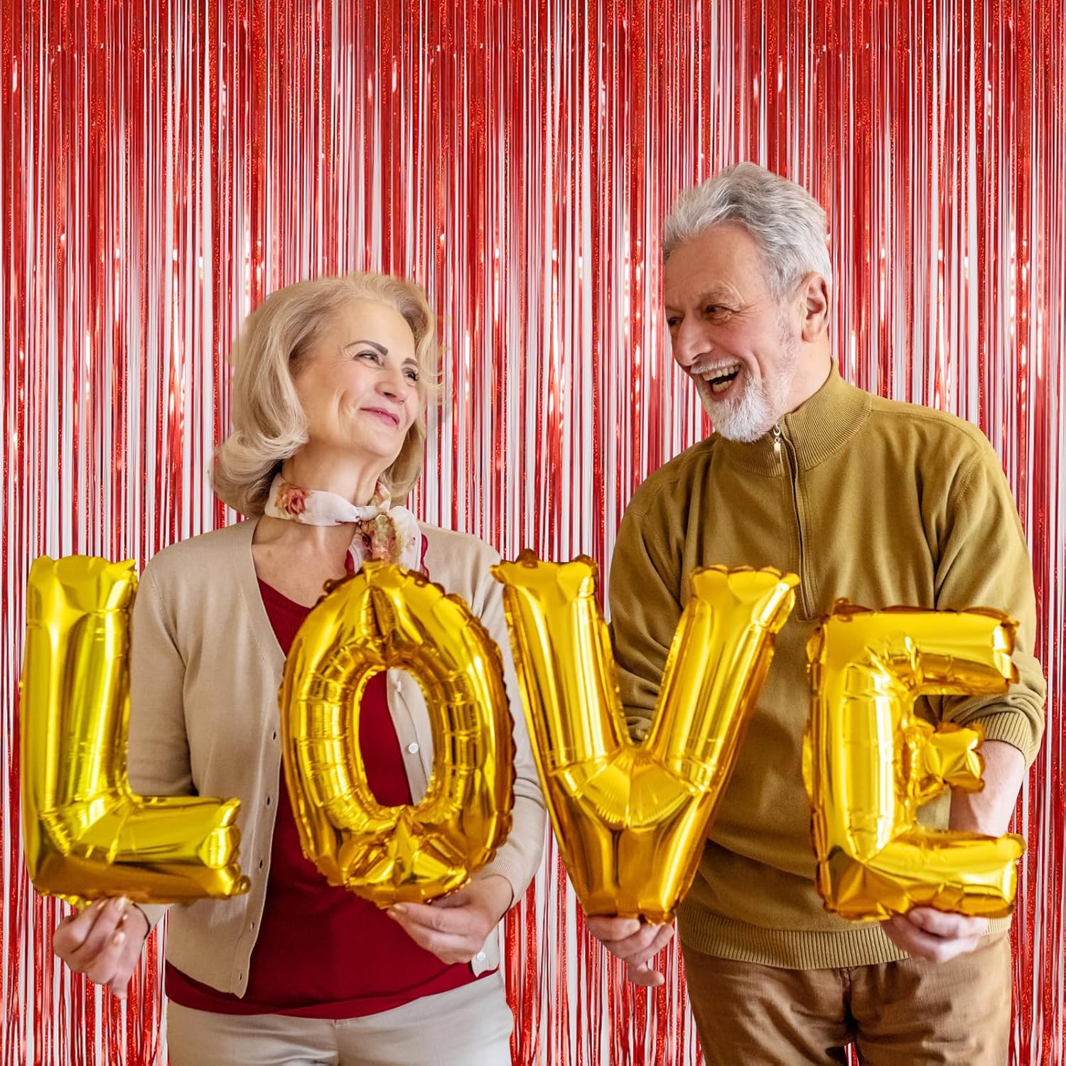 Foil Fringe Curtains Party Decorations - Melsan 3 Pack 3.2 x 8.2 ft Tinsel Curtain Party Photo Backdrop for Birthday Party Baby Shower or Graduation Decorations (Pure red)