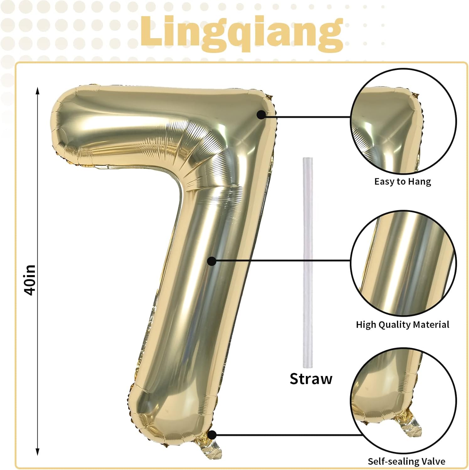 - 🎉Champagne Gold Number 7 Balloon 🎉 - You will get 1pc 40 inch mylar foil number 7 balloon and 1pc straw. Perfect for 7th 17th 27th 70th 75th birthday or anniversary party decorations supplies.