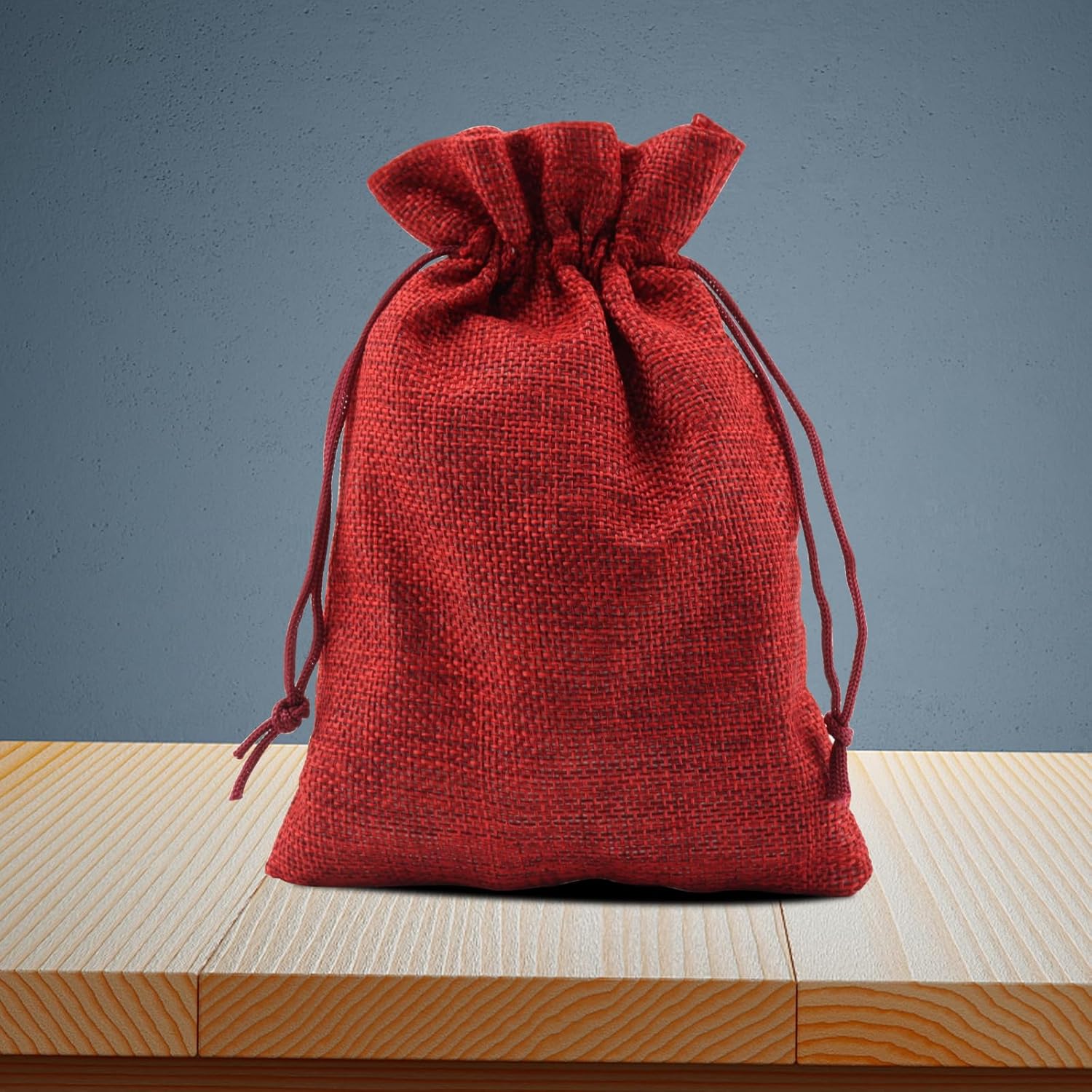 ZOENHOU 50 Packs 5 x 7 Inch Large Burlap Bags with Drawstring, Durable Wine Red Jute Drawstring Bags, Dustproof Burlap Sacks for Favors Party DIY Craft