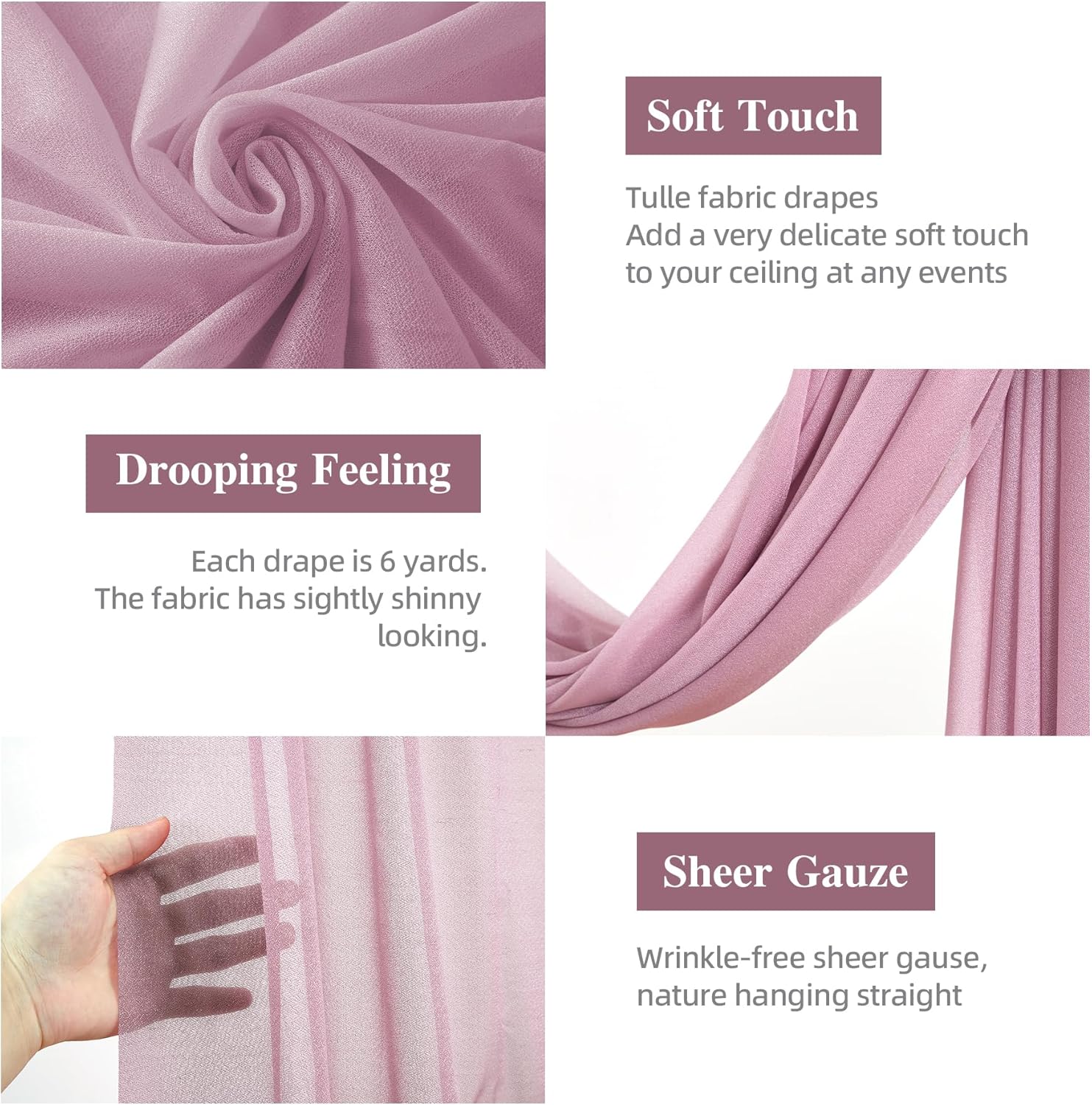 - Premium Wedding Arch Draping Fabric: These sheer arch drapes are made of 100% wrinkle-free tulle fabric, touch silky soft and looked romantic elegant, used sturdy and reusable . Whenever you use these scarf curtain, they can always keep smooth and flat.