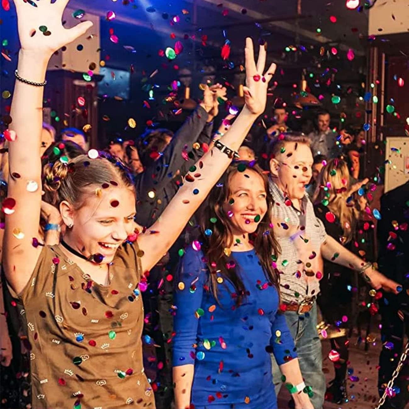- These round confetti are 0.59 inch/ 1.5 cm in diameter,and they weighs about 2.11 OZ per pack
