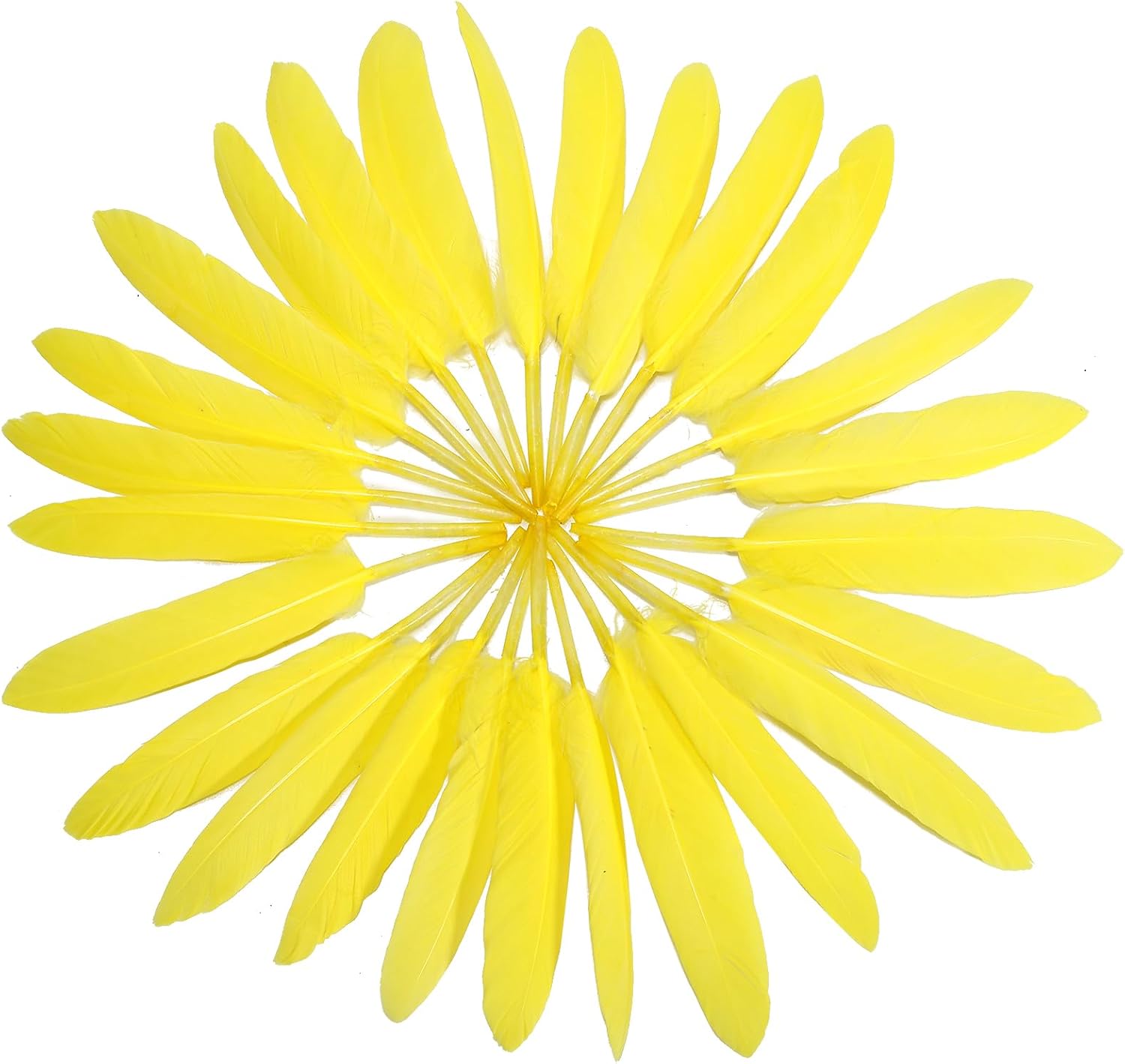 FeelfunFeather 120pcs Yellow Goose Cochettes Feather Natural Bulk 4-6 inch 10-15cm for Wedding Party Christmas Halloween Decorations DIY Crafts Goose Cochettes Feather