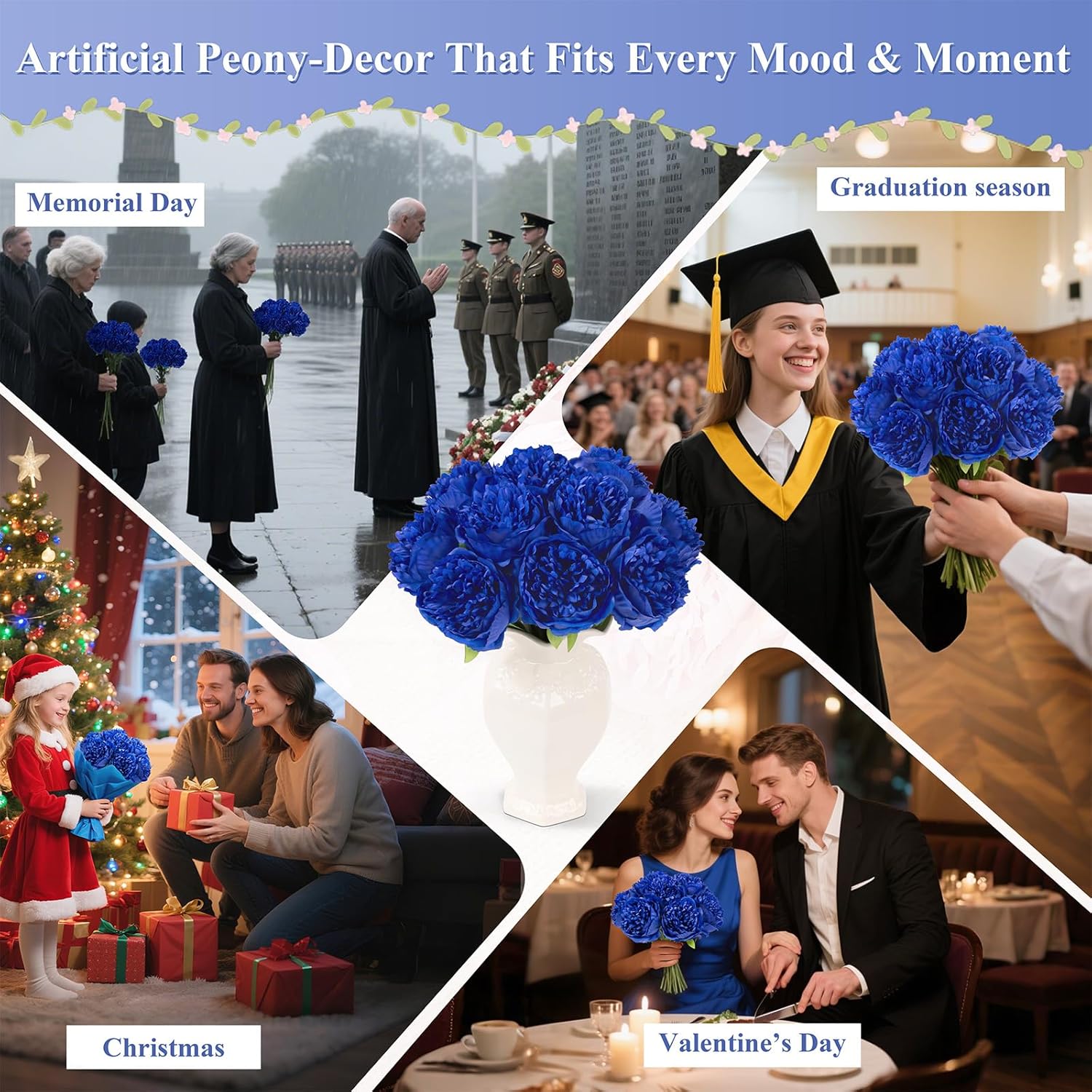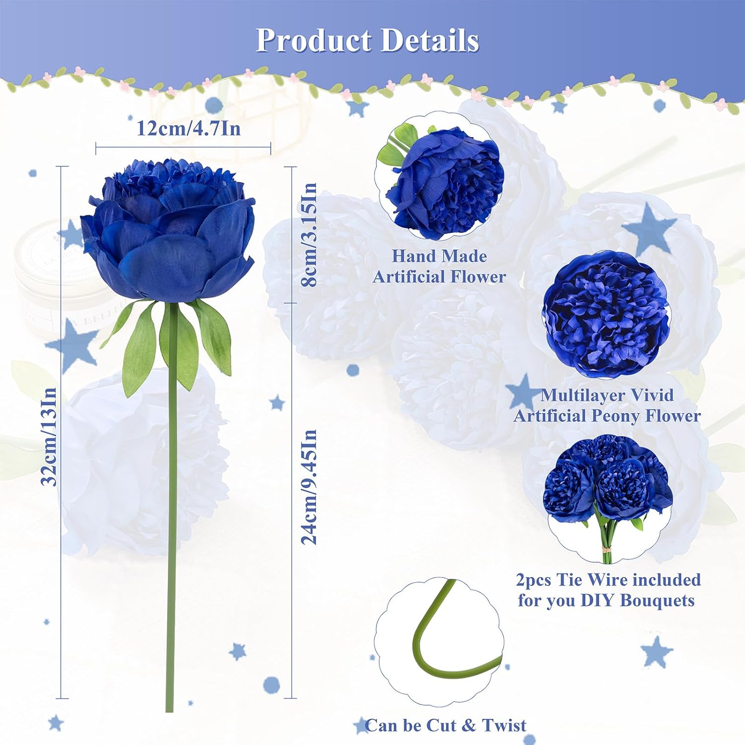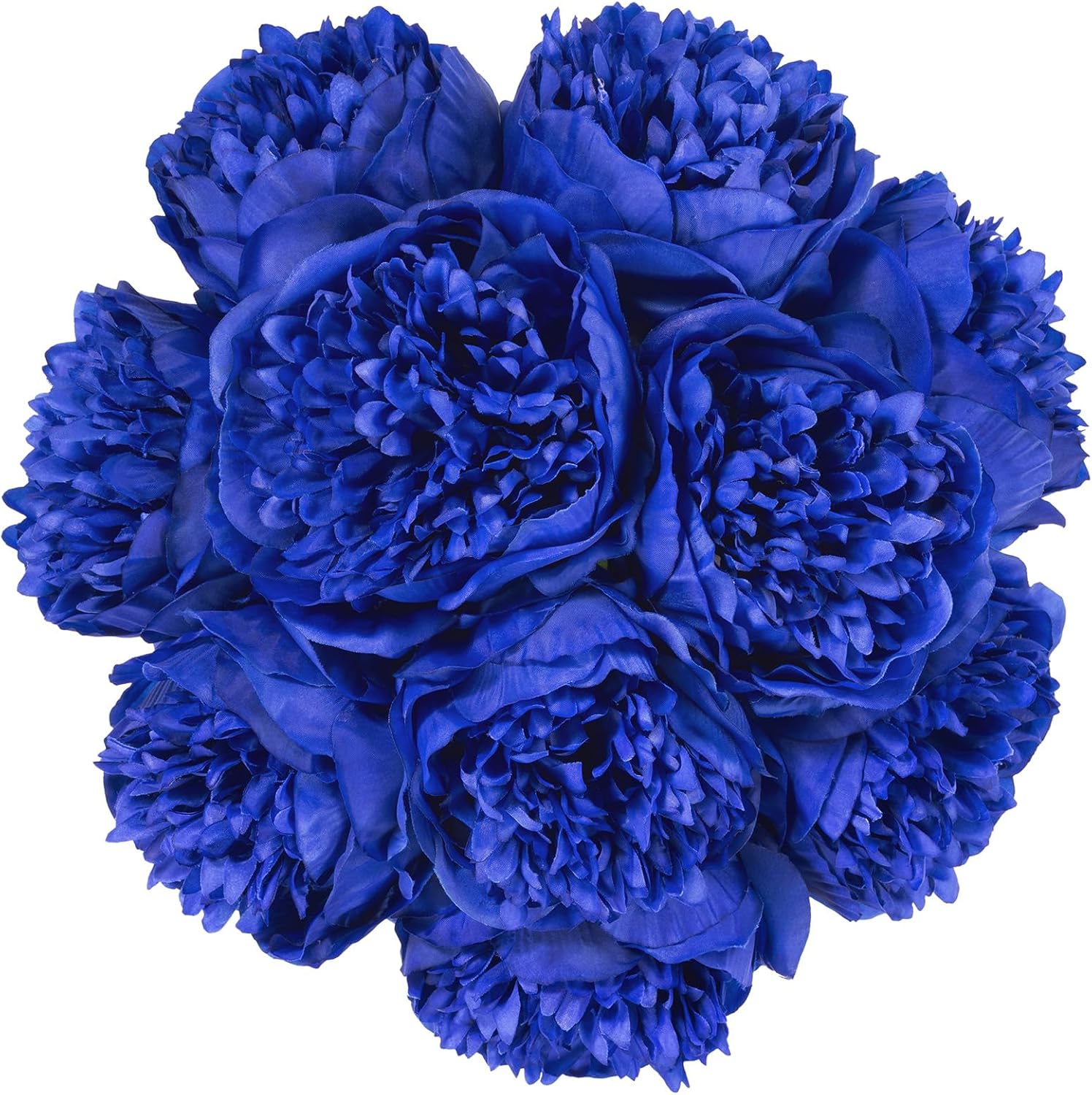 U'Artlines Artificial Peony Silk Flower with Stems 10pcs Real Look Vintage Peonies for Home Wedding Decoration (Navy Blue)