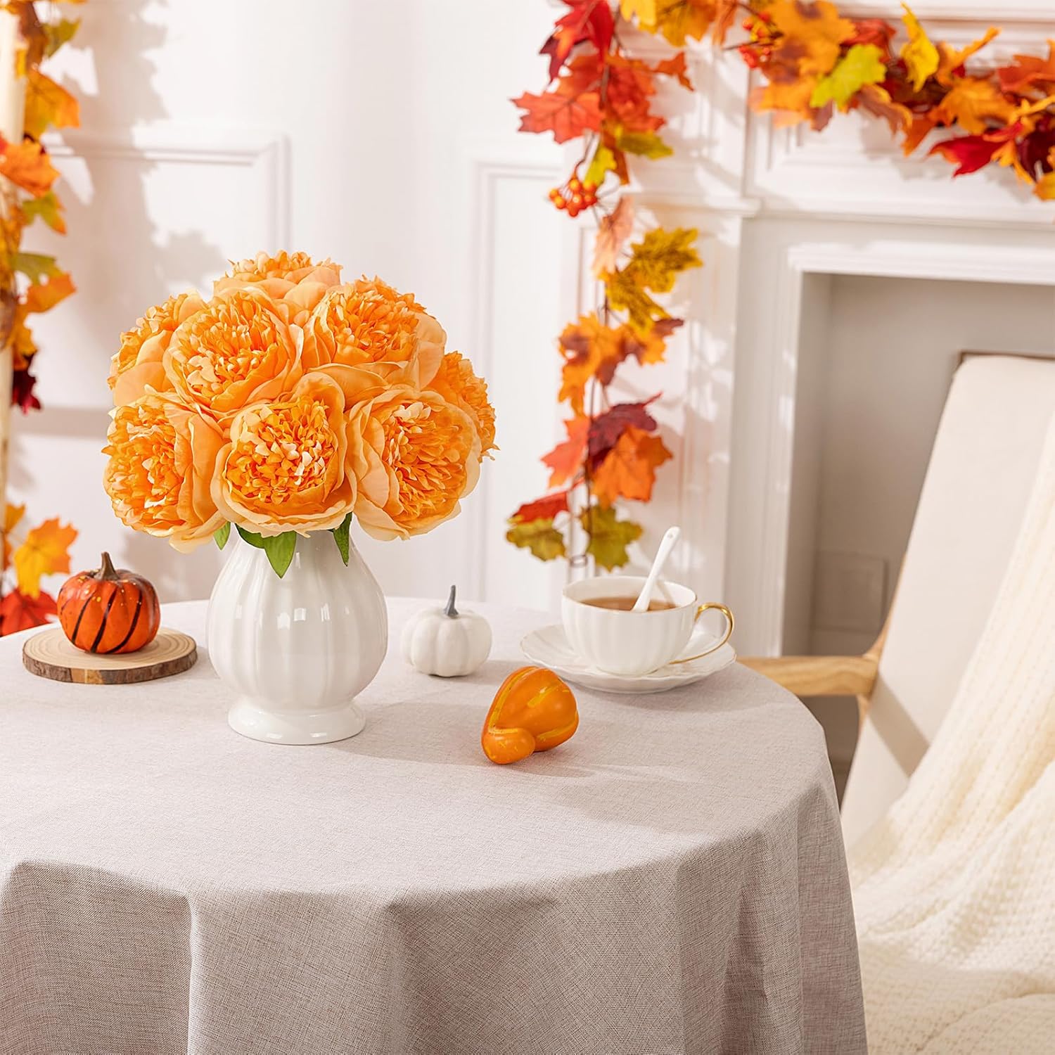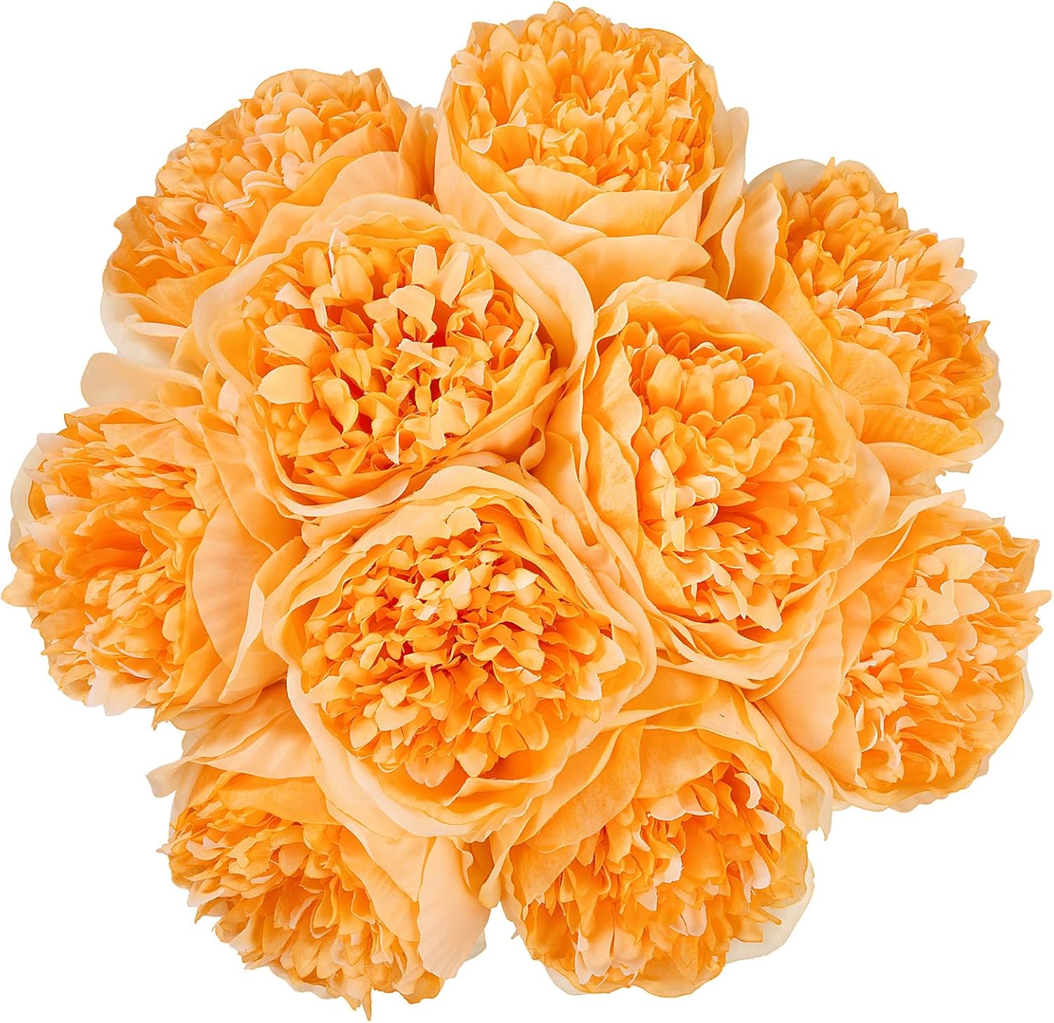 U'Artlines Artificial Peony Silk Flower with Stems 10pcs Real Look Vintage Peonies for Home Wedding Decoration (Orange)
