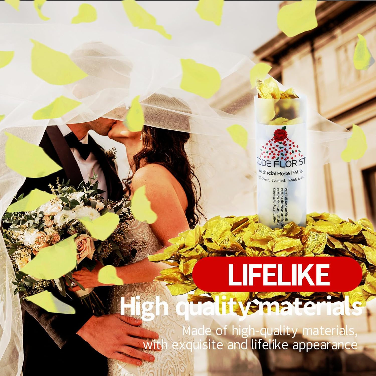 CODE FLORIST 1500 PCS Silk Rose Petals for Valentine's Day,Fake Rose Petals for Romantic Night,Wedding,Proposal Anniversary Flower Decorations(Separated,Scented,Gold)
