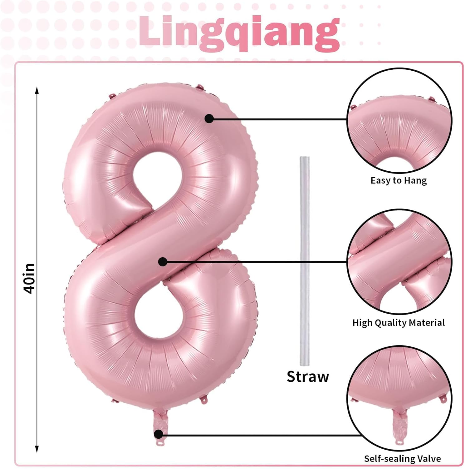 - 🎉 Pastel Pink Number 8 Balloon 🎉 - You will get 1pc 40 inch mylar foil number 8 balloon and 1pc straw. Perfect for 8th 18th 28th 80th 85th birthday or anniversary party decorations supplies.