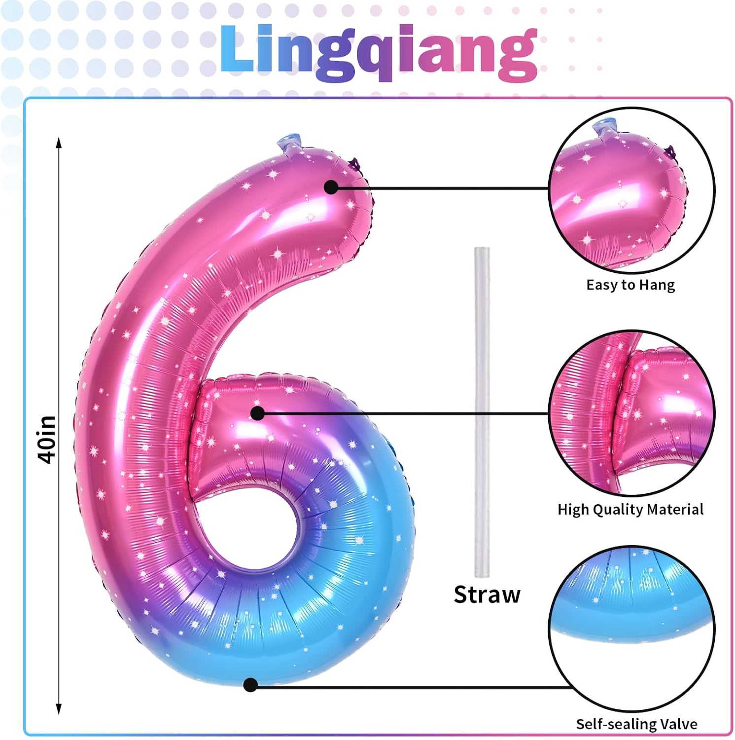 - 🎉 Gradient Rainbow Number 6 Balloon 🎉 - You will get 1pc 40 inch mylar foil pink blue starry number 6 balloon and 1pc straw. Perfect for 6th 16th 26th 60th 65th birthday or anniversary party decorations supplies.
