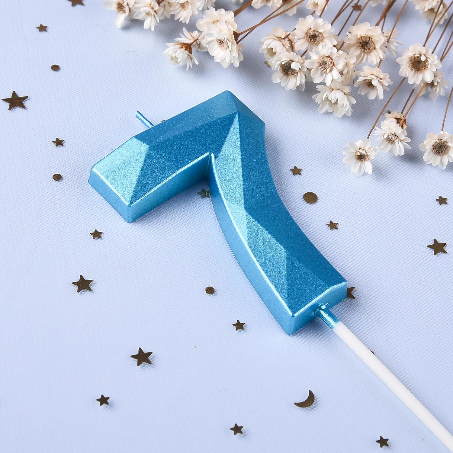 - New: 2.76 Inch Large Crystal Blue 7 Number Birthday Candle designed to make your cake and birthday a unique and truly inspiring event.