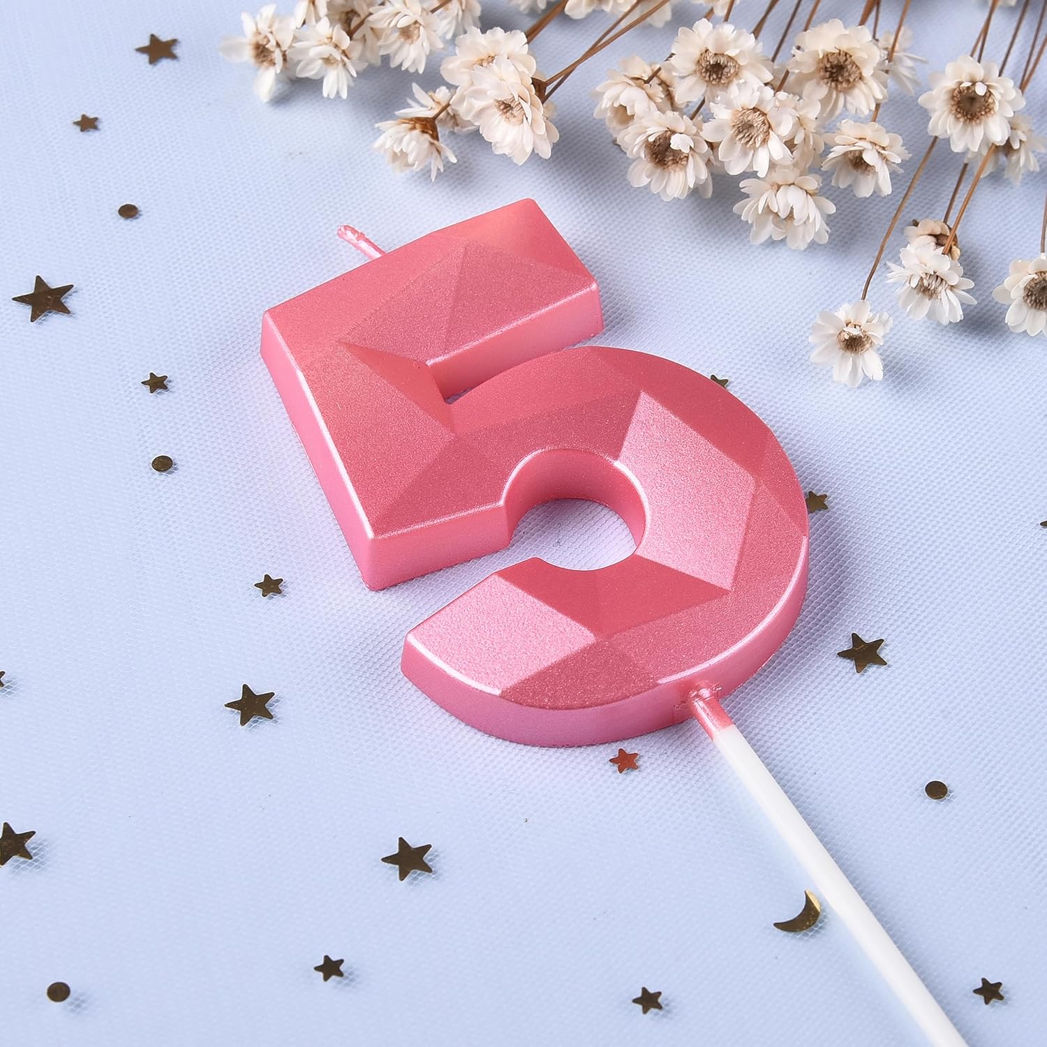 - New: 2.76 Inch Large Crystal Pink 5 Number Birthday Candle designed to make your cake and birthday a unique and truly inspiring event.
