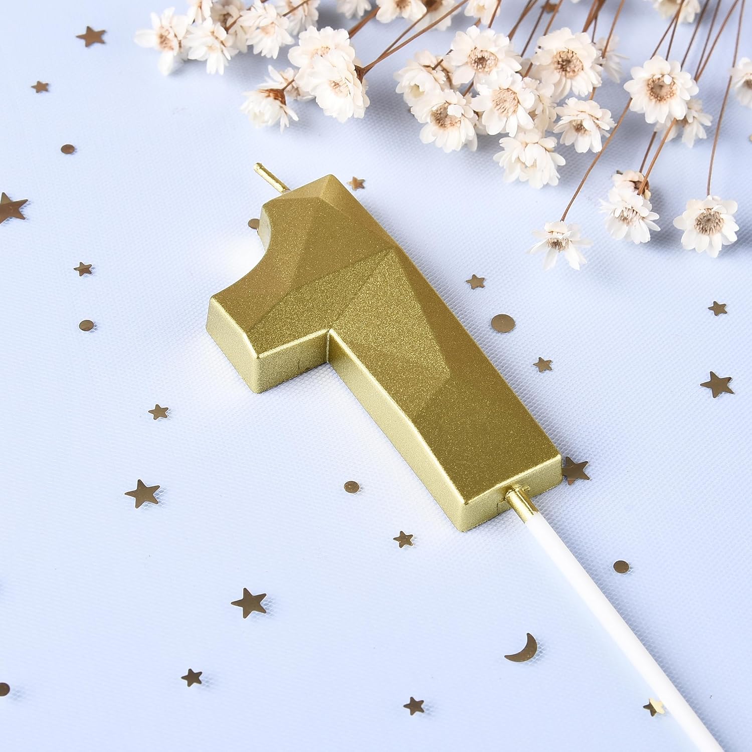 PHD CAKE 2.76 Inch Crystal Gold 1 Number Birthday Candles, Gold Number Candles, Cake Number Candles, Party Celebration