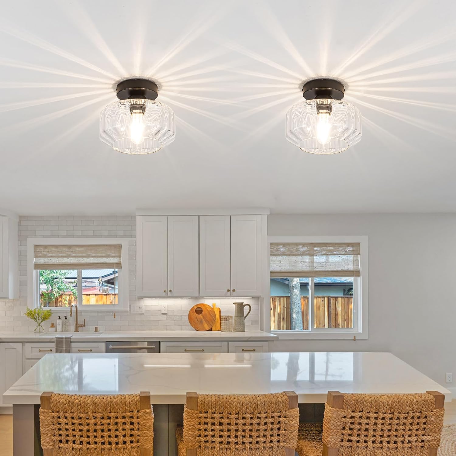 - 💎 Semi-Recessed Modern Fixture w/ Diamond Glass: Elevate any room with this semi flush mount ceiling light, featuring elegant clear hexagonal diamond textured glass for stunning lighting effects and a durable matte black base. Perfect black light fixture adding vintage charm