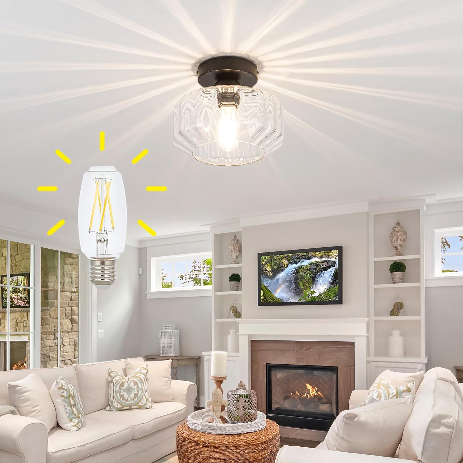 - 🔧 Easy Install & Low Maintenance: Simple installation makes setup a breeze. Easy-to-clean clear glass shade and wide accessibility simplify bulb changes (E26 base compatible). Ideal size flush mount (8.66"L x 4.72"W) fits perfectly in entryways, halls, foyers, or dining rooms.