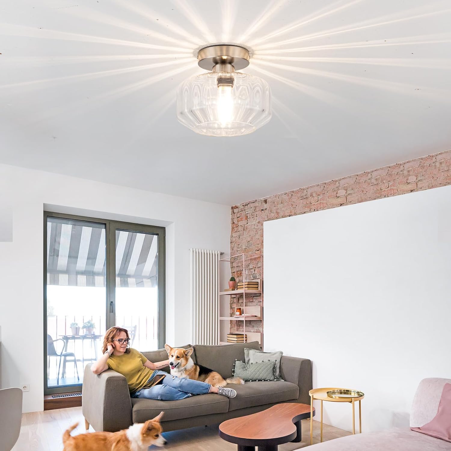 - 1.Semi-Flush Mount Design with Textured Glass & Brushed Nickel: Features a stylish semi flush mount ceiling light silhouette and durable brushed nickel base. The hand-blown clear textured glass shade creates stunning light diffusion and adds modern elegance, perfect for enhancing room decor. A classic yet modern flush mount ceiling light.