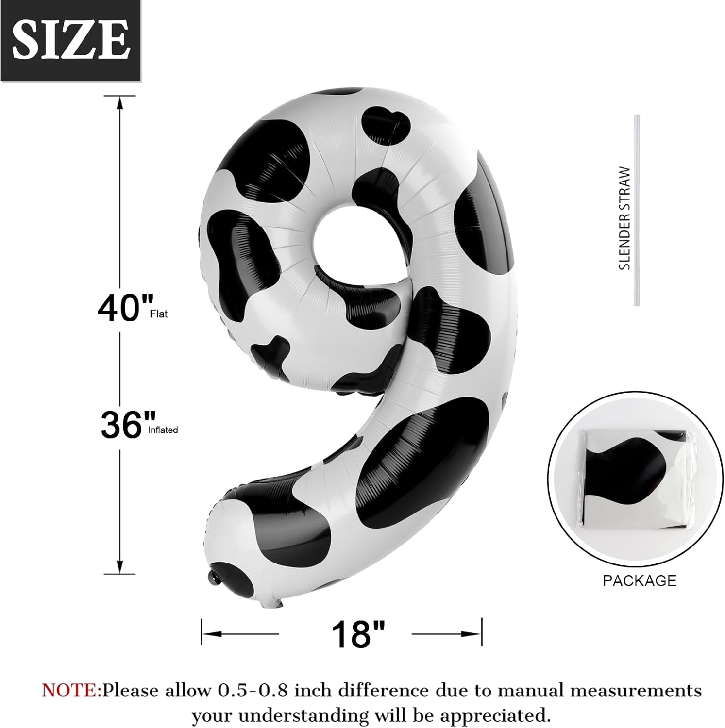 - 【Cow Print Number Balloon】- The package includes number balloons (uninflated) and a straw. You can purchase additional cow numbers to combine into any number you want. The cow print number balloon will be perfect for your kids party, whether it's throwing a cowboy themed party, farm themed party, or any birthday party. Add lots of whimsy to your decor!