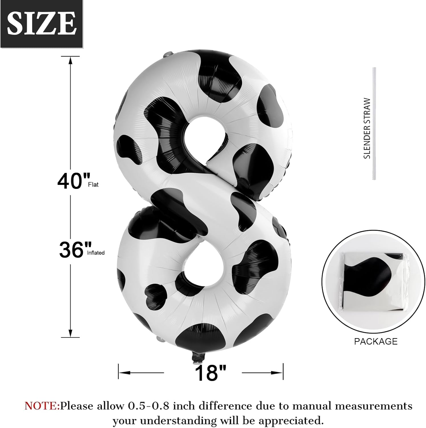 - 【Cow Print Number Balloon】- The package includes number balloons (uninflated) and a straw. You can purchase additional cow numbers to combine into any number you want. The cow print number balloon will be perfect for your kids party, whether it's throwing a cowboy themed party, farm themed party, or any birthday party. Add lots of whimsy to your decor!