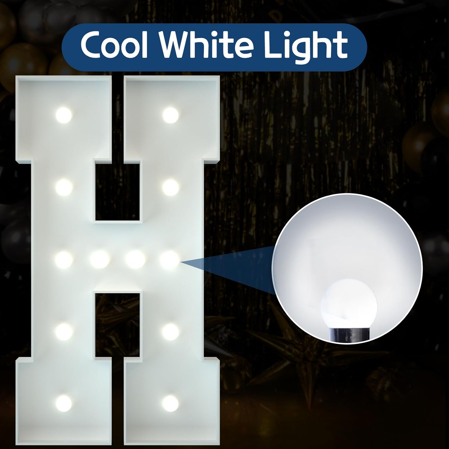 - Cool White Light: 4FT light up letters are equipped with cool white light strings, giving a fresh, modern feel, and can be perfectly adapted to all kinds of party decorations.