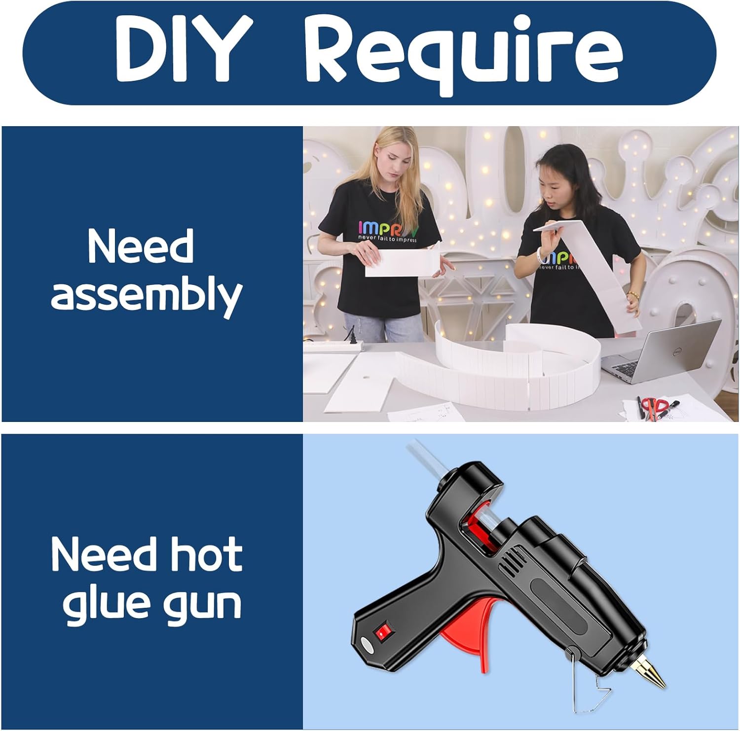 - Need Assembly: Assembly requires a hot glue gun, and we have pre-cut the light up numbers into several pieces. You can refer to the instruction manual to assemble the marquee numbers 3 feet tall using a hot glue gun.