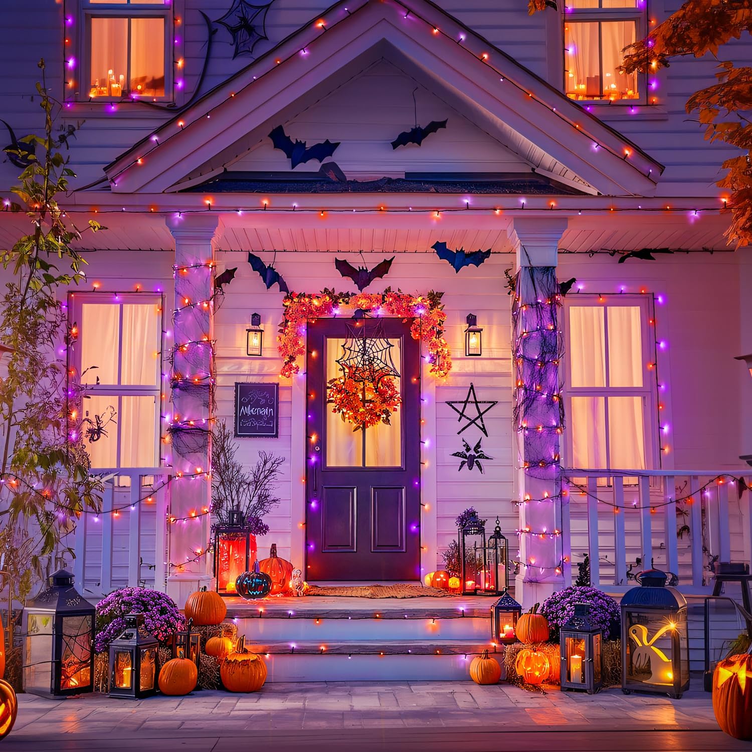 - Widely Used Solar Halloween Lights: Nothing can compete with lightings when it comes to atomosphere building! You definately need our orange and purple Halloween lights to decorate every part of your home for Halloween! The solar string lights is long enough to apply on diverse outdoor scenes such as yard, patios, porches, gardens. More surprisingly! The leading wire is 3m/9.9ft long, so you can put the solar panel near window to absorb the sunlight. Indoor decoration is also great