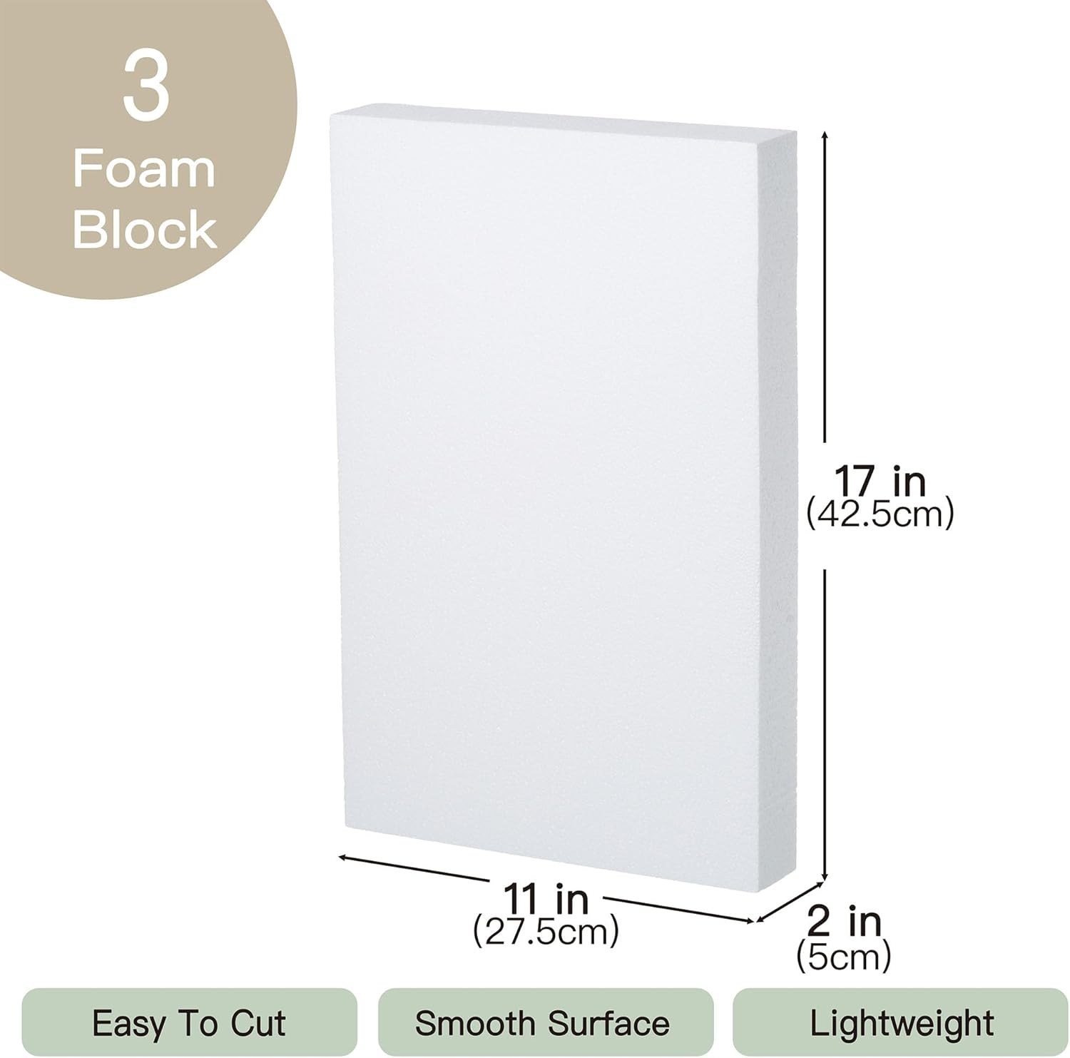 Crafare 17X11X2 Inch Craft Foam Blocks 3 Pack Polystyrene Foam Sheet DIY Crafting Rectangle for Arts School Projects Sculptures Floral Arrangements Modeling and Centerpieces