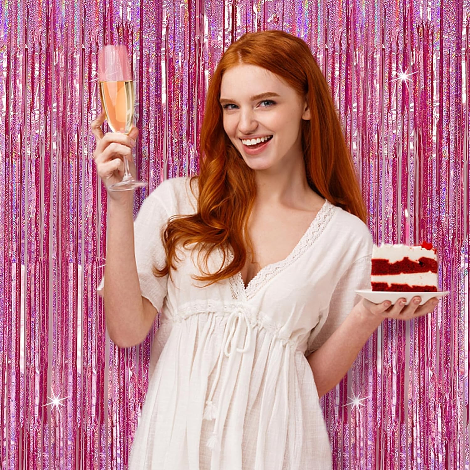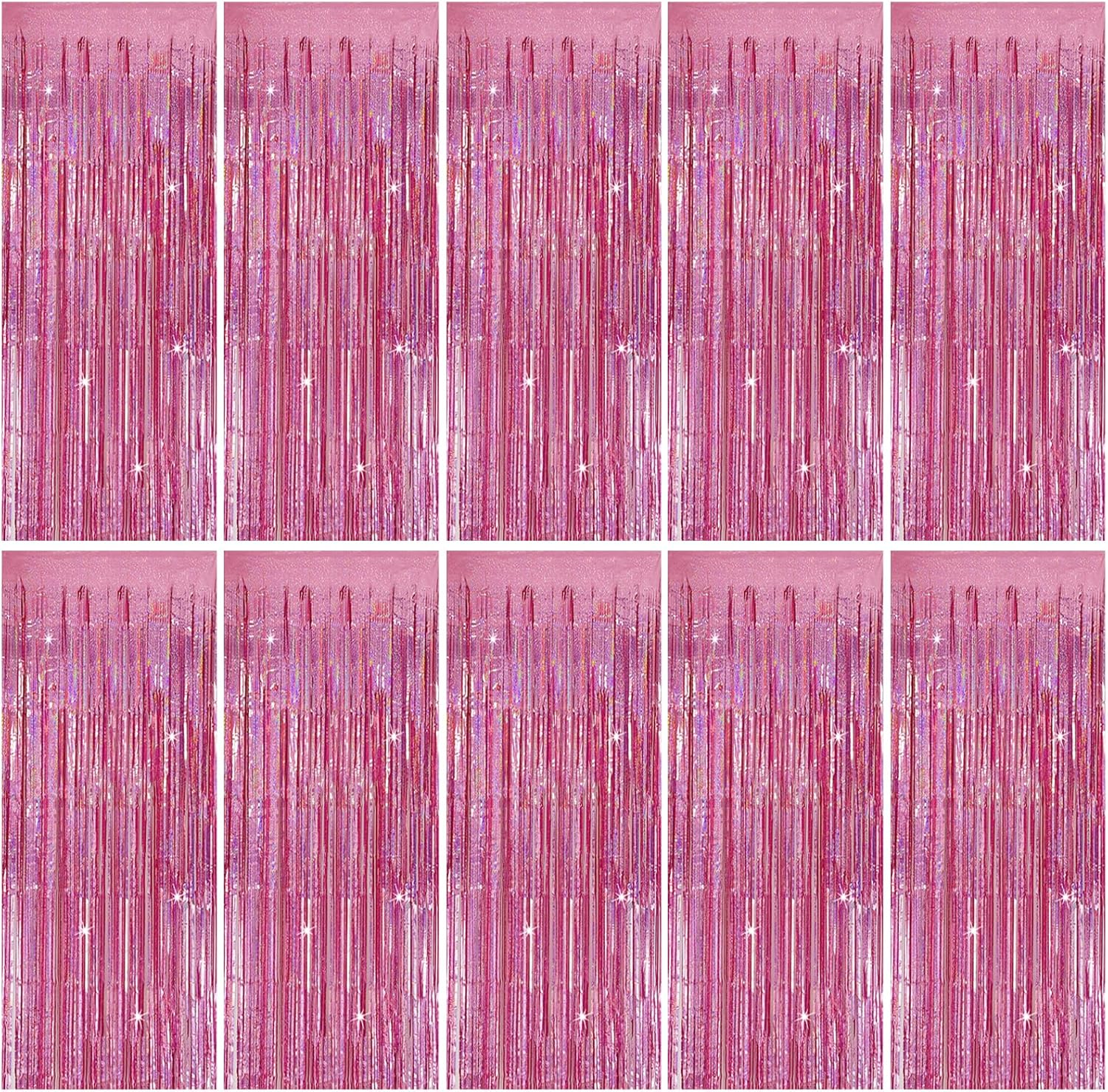 Tinsel Curtain Party Backdrop Pink Birthday Decorations 10 Packs Glitter Foil Fringe Curtain Party Decor Streamers Photo Booth for Birthday Christmas Wedding Halloween Graduation Decorations