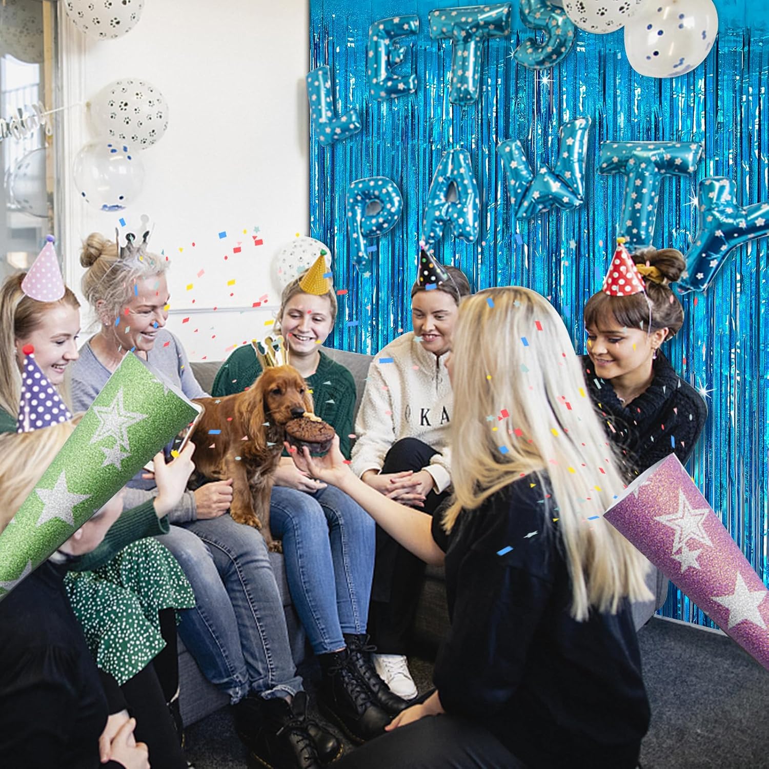 Tinsel Curtain Party Backdrop Blue Birthday Decorations 5 Packs Glitter Foil Fringe Curtain Party Decor Streamers Photo Booth for Birthday Christmas Wedding Halloween Graduation Decorations