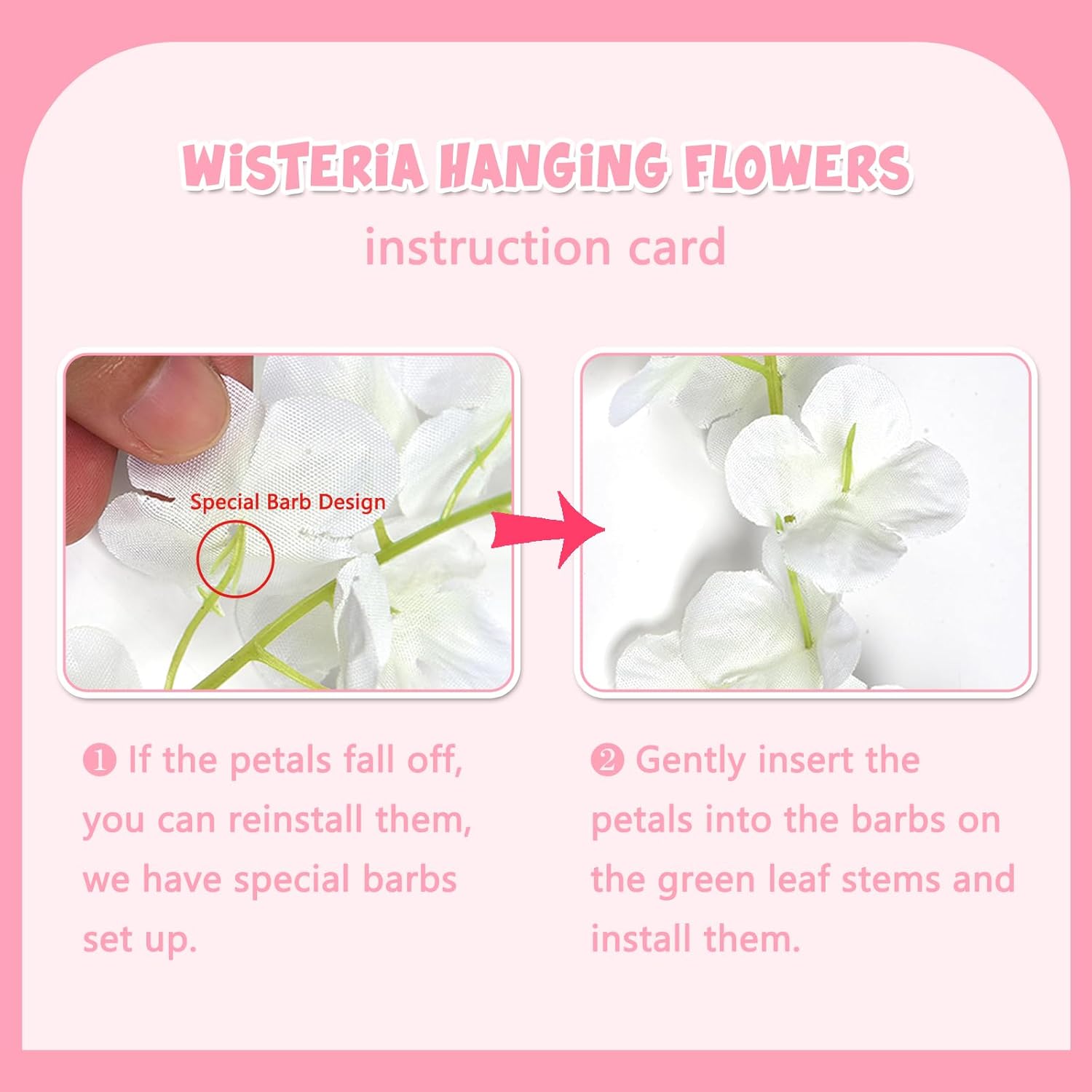 - 【Easy to Install】The pink wisteria hanging flowers garland stem is made of durable metal wire and covered with plastic. You can bend the wisteria flower in any shape to satisfy your decoration imagination without damaging it. And the wisteria flower is very easy to install and remove, you can reduce a lot of troubles on installation.