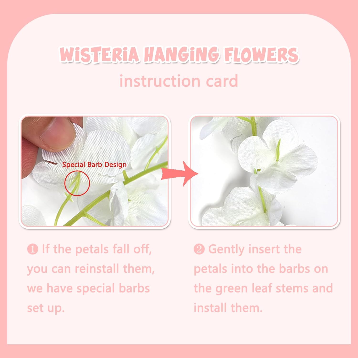 - 【Suitable for A Variety of Scenes】Light pink Wisteria hanging flowers have a purely natural pattern design, realistic and natural, suitable for decorating living rooms, bedrooms, study rooms, and windowsill places, so that your living space into the natural atmosphere, become more comfortable. At the same time, they are also suitable for decorating dinner parties, birthday parties, weddings, and other places, to create a warm atmosphere, so that your guests leave a good and unforgettable memory.