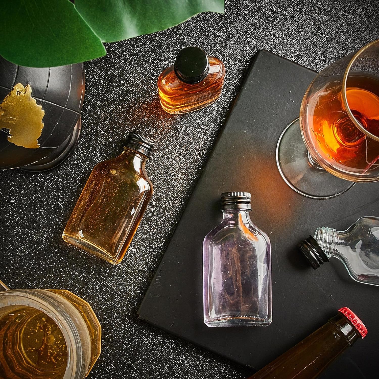 - Solid Material: these small liquor bottles are formed by quality glass with aluminum alloy caps, which are not easy to break, light in weight and portable to carry or store, have no bad smell, the bottle and cap can nicely fit, providing a long time service for you