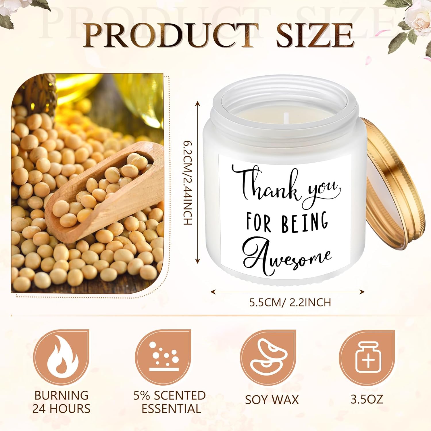 - Quality Soy Wax: our scented thank you candles gift use natural soy wax to keep the scent for a long time; Containing natural plant essence and a little essential oil, they smell refreshing, which can help you create a relaxed and pleasant atmosphere