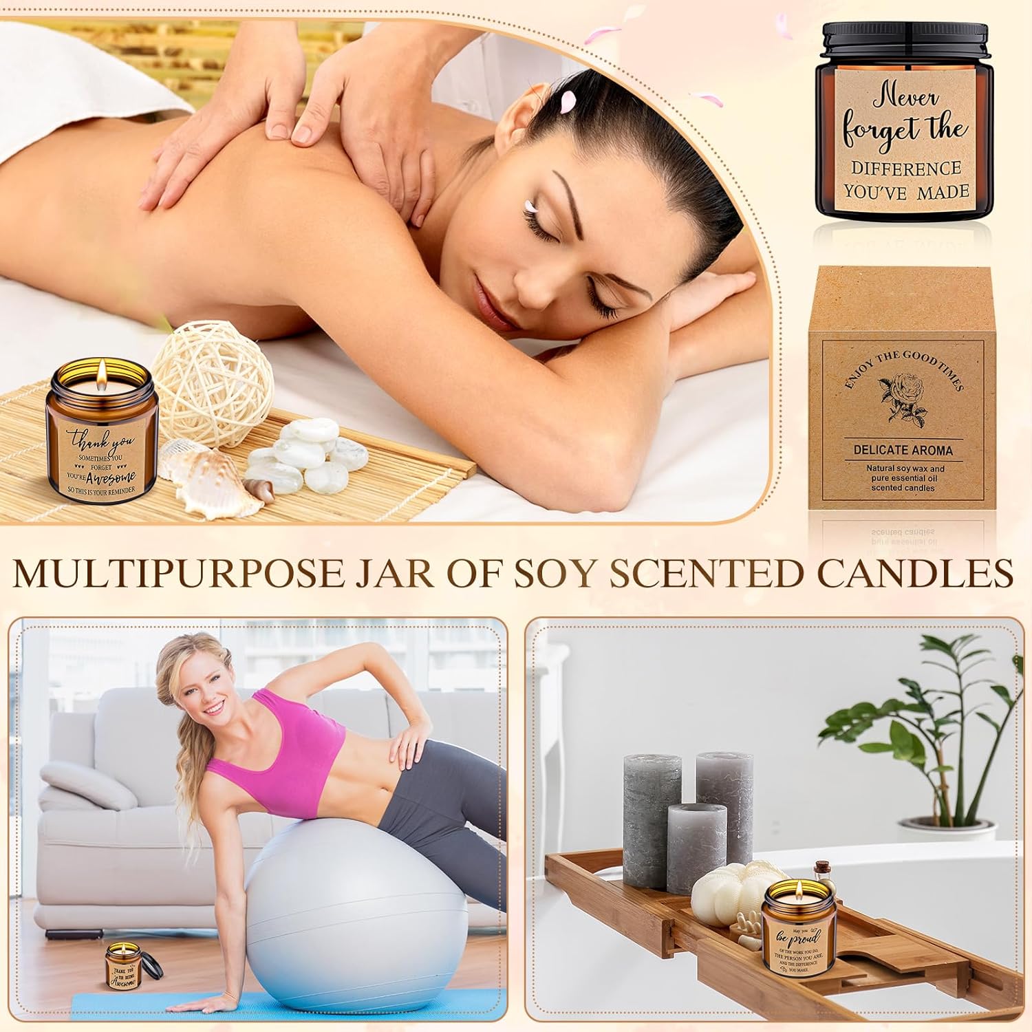 - Warm Design for Your Loved One: the brown bottle of our scented decorative candles is printed with words such as [Thank you for being awesome], [So Grateful For you], [Never Forget The Difference you made], inspirational to express your care and blessings, suitable for administrative assistants, colleagues, employees, teachers, colleagues, family members, etc., on Valentine's Day, Christmas, birthday, retirement, graduation and other occasions