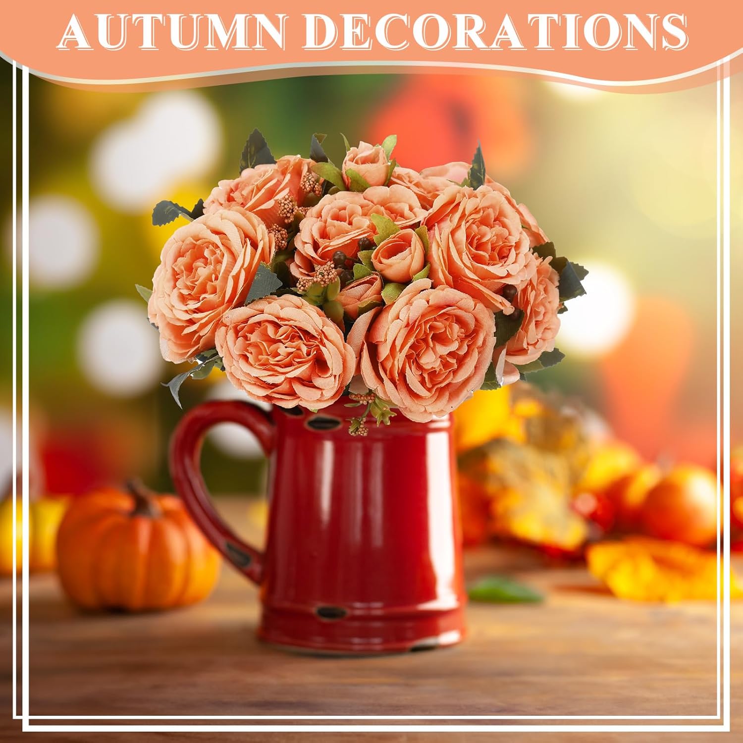 8 Bundles Artificial Peonies Flowers Boho Faux Flowers Arrangements Artificial Centerpiece Spring Bouquet Floral Wedding Decoration for Vase(Orange)