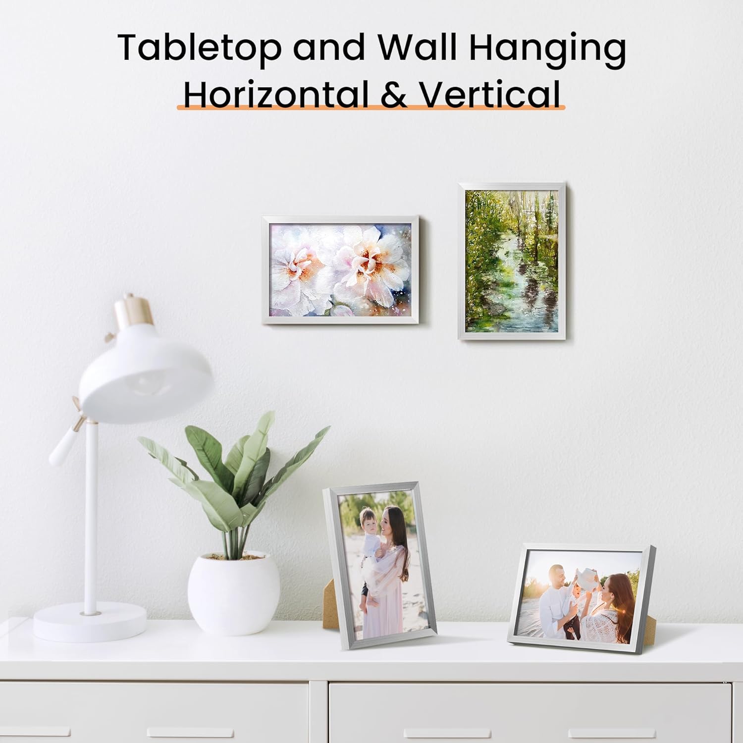 - Size: One wall silver photo frame fits 4x6 photo without mat, can be hung horizontally or vertically.