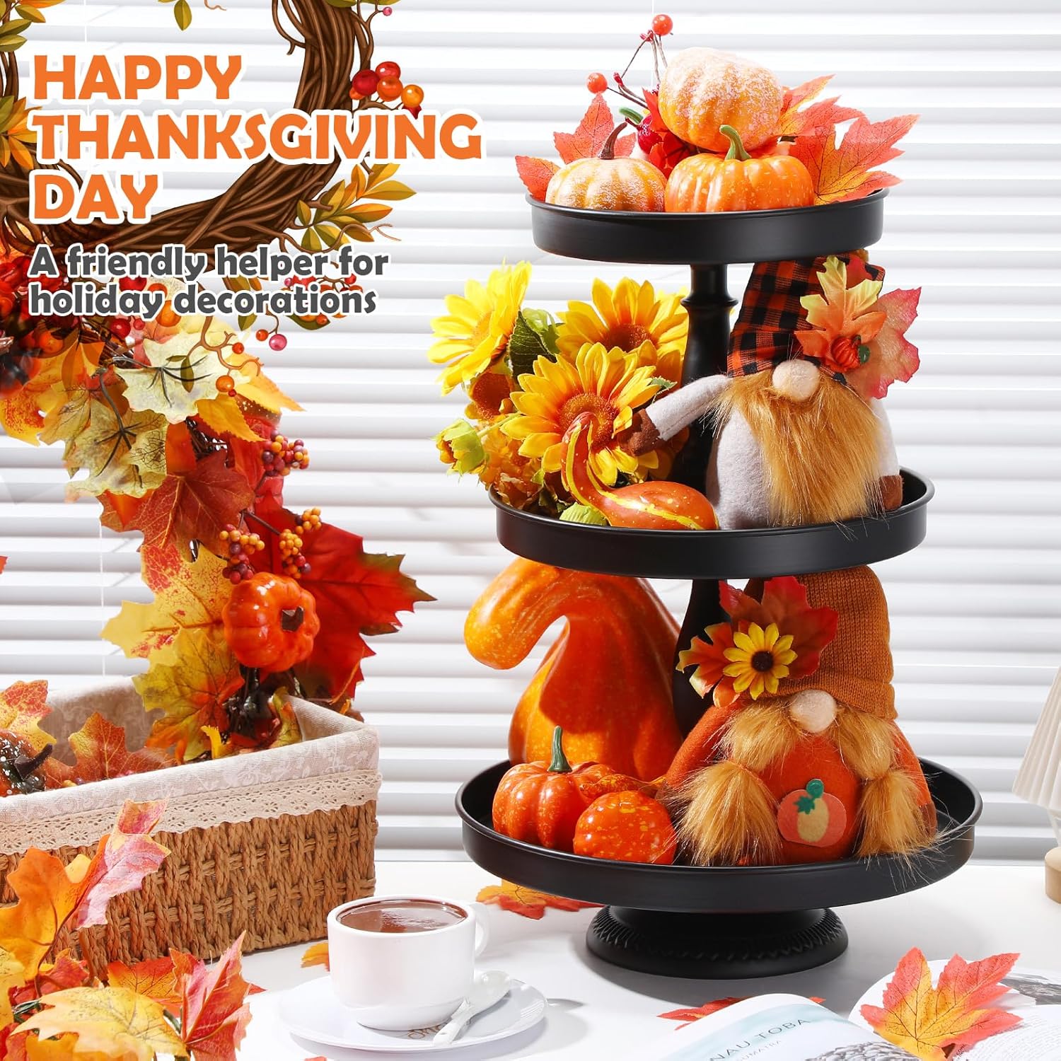 Maxdot 2 Pcs 3 Tier Cupcake Stand Holder, Round Cupcake Stand Serving Tray, Metal Tiered Tray Pastry Dessert Cake Tower Display Stand for Baby Shower Tea Party, Wedding and Birthday (Black)
