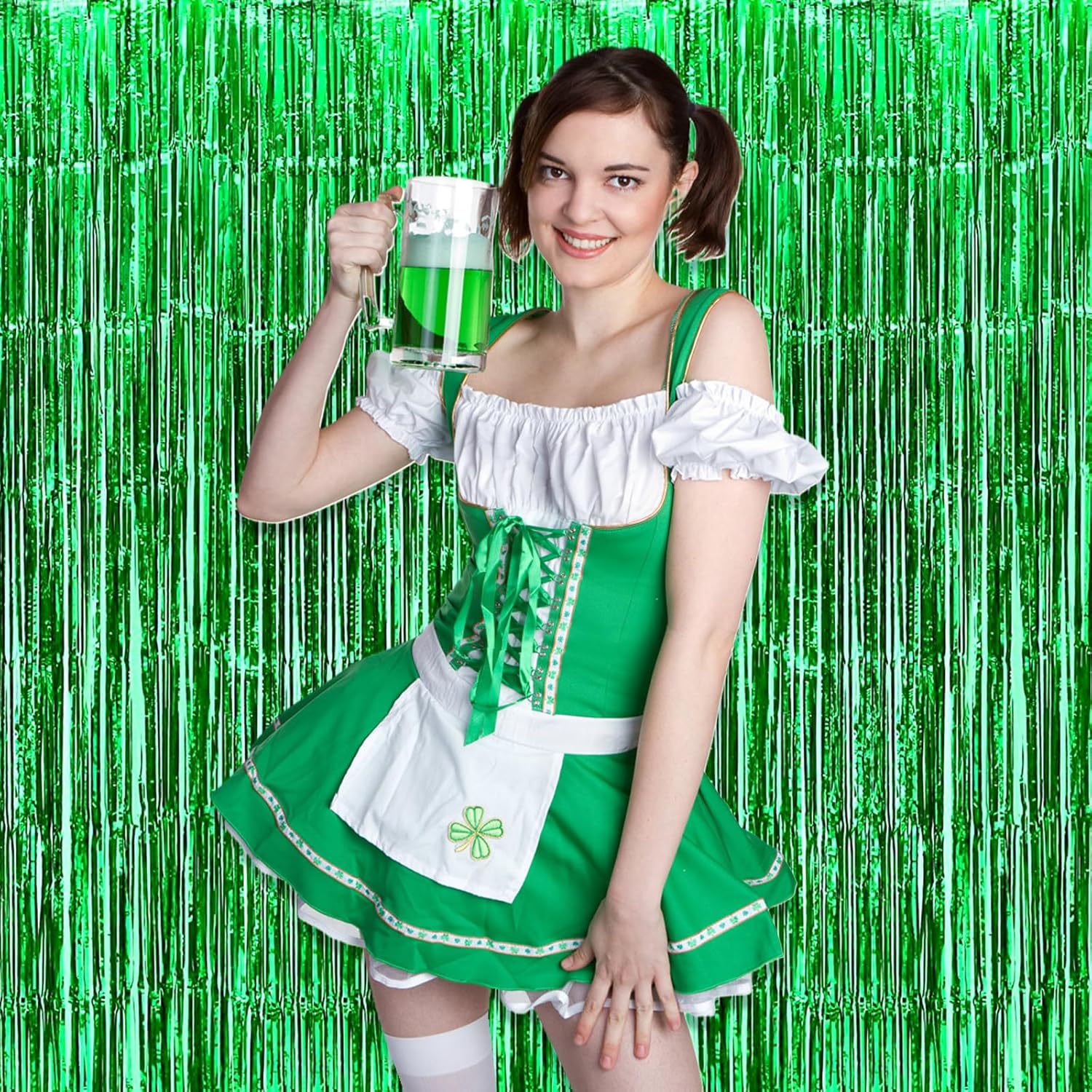 3 Pack Green Foil Fringe Curtain Backdrop, 3.28Ft x 8.2Ft Metallic Tinsel Foil Fringe Streamer Curtains for Photo Booth, Christmas Day, Thanksgiving, Wedding, New Year Party Decorations