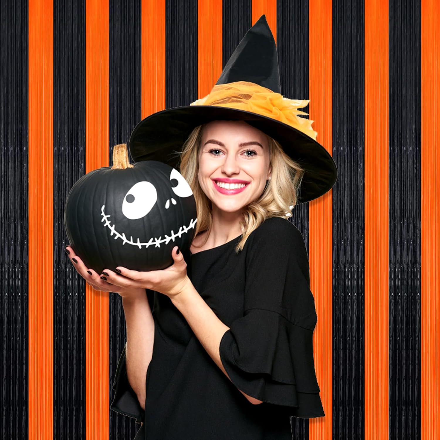 3 Pack Black Orange Foil Fringe Curtain Backdrop, 3.28Ft x 8.2Ft Metallic Tinsel Foil Fringe Streamer Curtains for Photo Booth, Mother's Day, Easter, Birthday, Wedding Party Decorations