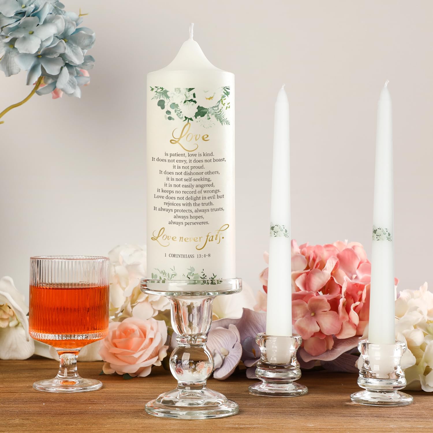 - ⭐Easy Matching Glass Candle Holders: Say goodbye to the hassle of finding the right size crystal candle holders. Our Wedding Centerpieces Set includes three matching glass candlestick holder that fit perfectly to the size of the decorative baptism candle. These taper candle holders ensure a secure and stable presentation, allowing you to focus on the meaning of your wedding bible ceremony without worry.