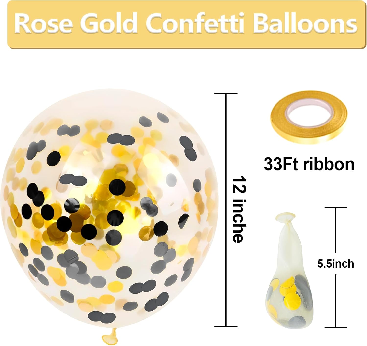 - 【Black Gold Confetti Balloons】- Each sets contains 60pcs black gold confetti balloons of 12 inches and 1pcs gold ribbon (33 feet total).The right amount quantity and most suitable color for each party decoration.