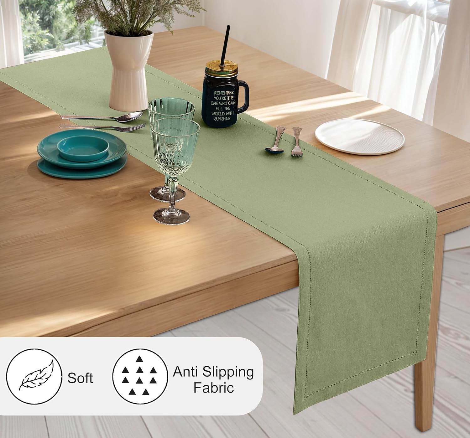 Ruvanti Linen Table Runner 72 Inches, Classic Hemstitch, Washable, Reusable, Non-Slipping, Stain Resistant- Perfect for Parties, Weddings, Dinners, Thanksgiving, Christmas, Indoor use – Olive