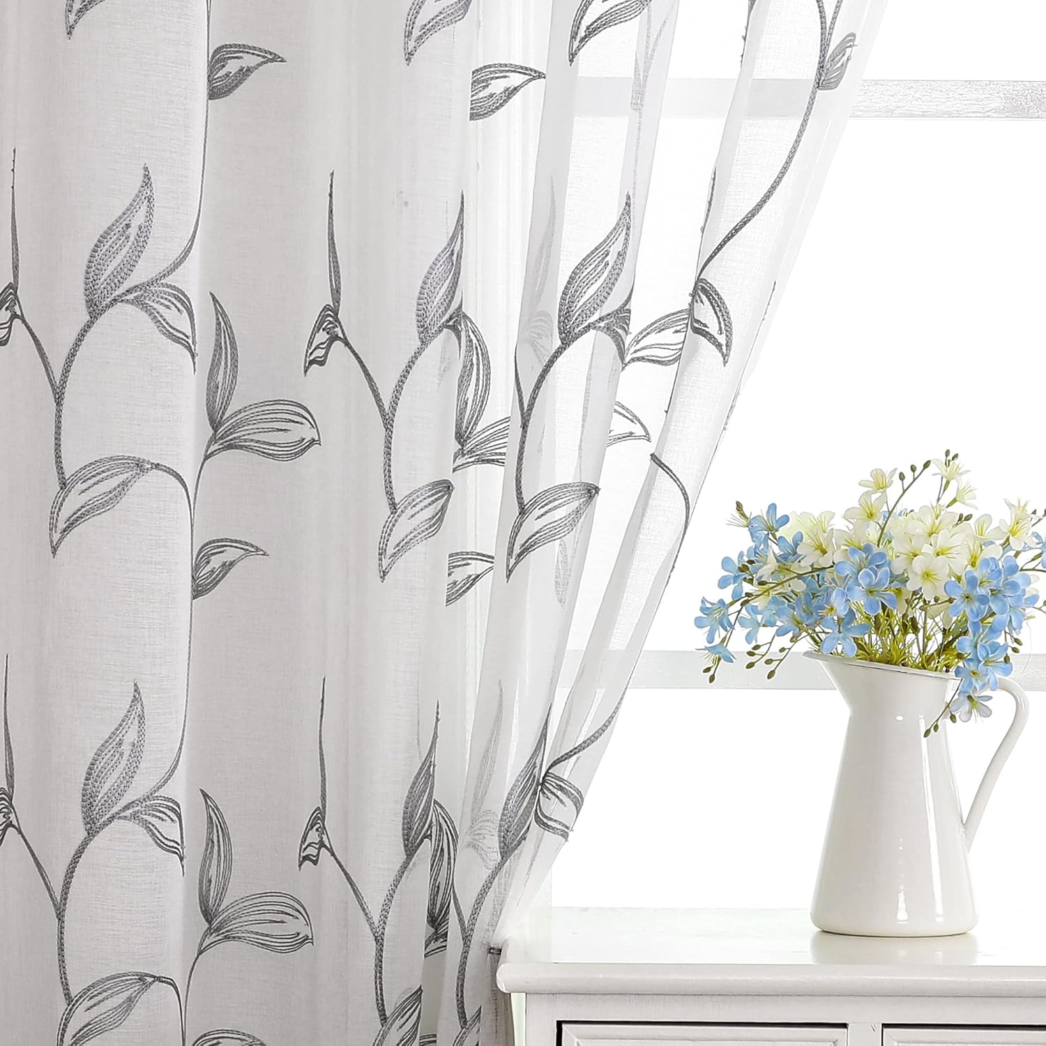 - Elegant embroidered design: window sheer curtains design cream leaves embroidered pattern, add style and elegance to living space, perfect for Bedroom, living room, kids room or any window.