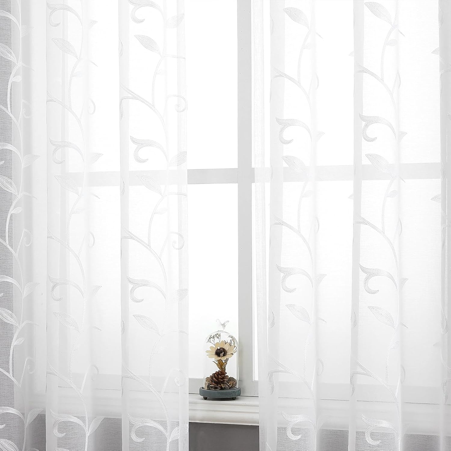 - Elegant embroidered design: window sheer curtains design cream leaves embroidered pattern, add style and elegance to living space, perfect for Bedroom, living room, kids room or any window.