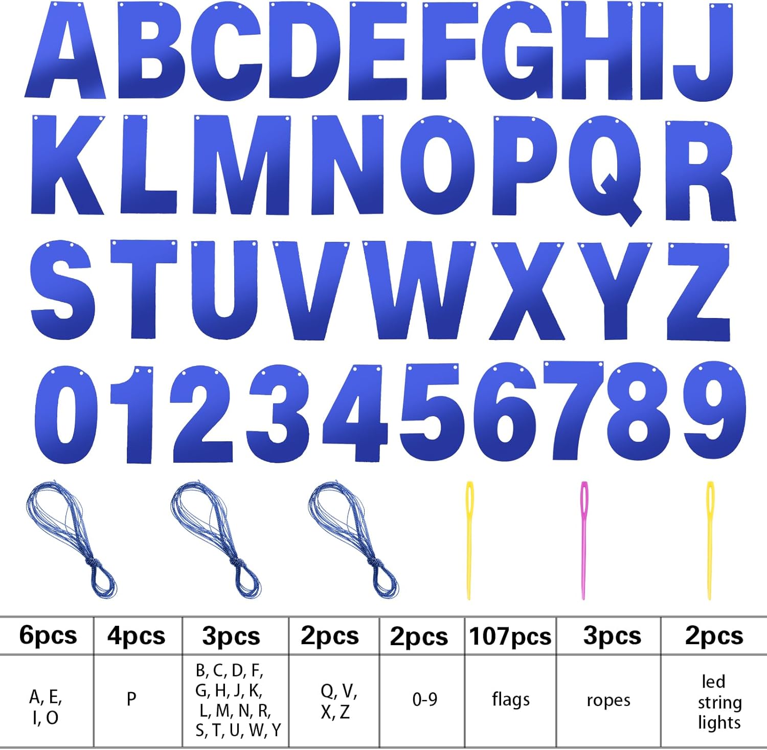 - DIY Banner Kit with Letters: you will get 107 pieces of letters and numbers, including 6 'A, E, I, O' letters, 4 'P' letters, 3 'B, C, D, G, H, J, K, L, letter M, N, R, S, T, U, letter W, Y, F shape' letters, 2 'Q, V, X, Z' letters and 2 '0-9' numbers, come with 3 ropes; Nice combination meet your various parties decorative demands