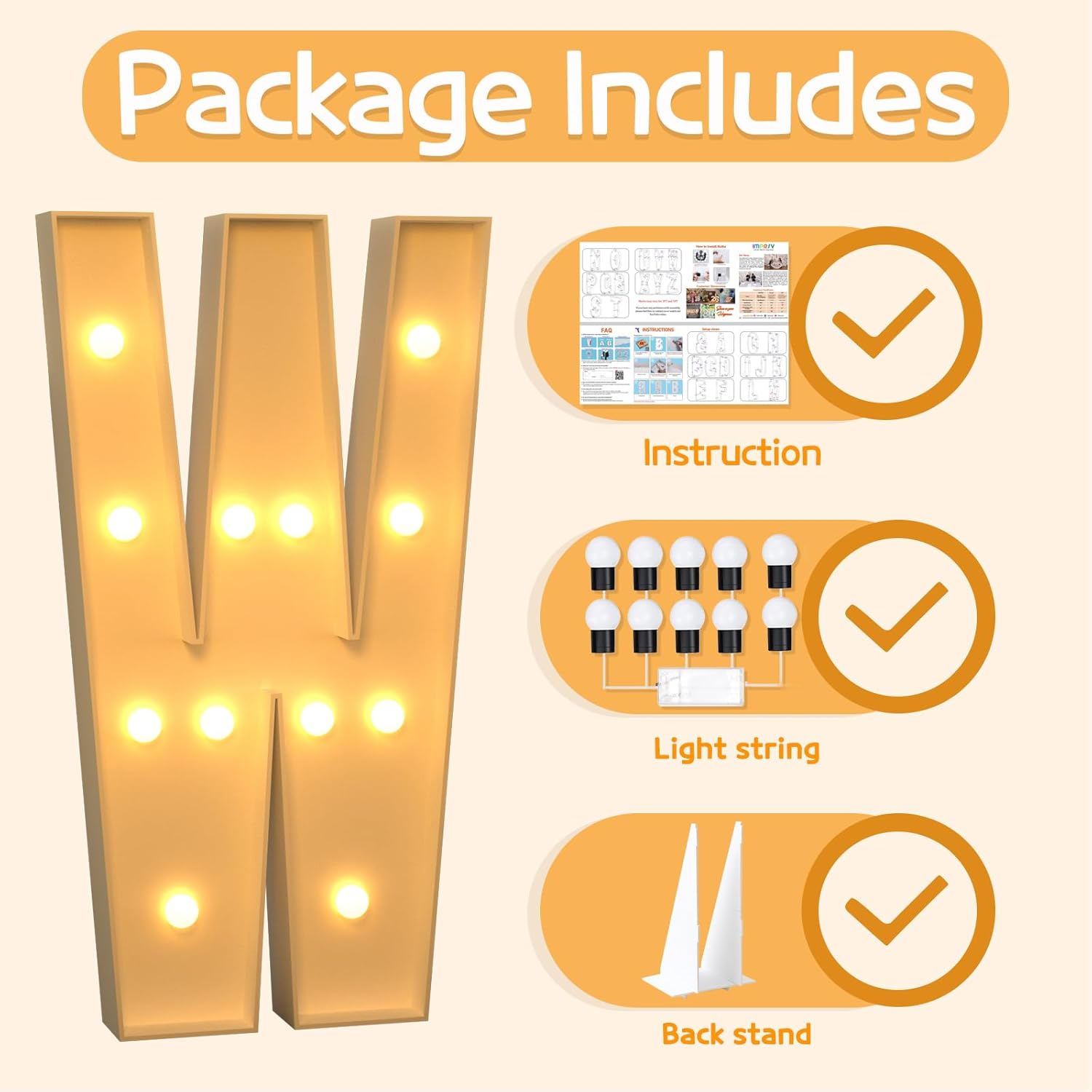 - Equipped with Light String: Marquee light up letters include matching light strings, so you can say goodbye to the annoyances of incompatible light strings and enjoy an effortless setup.