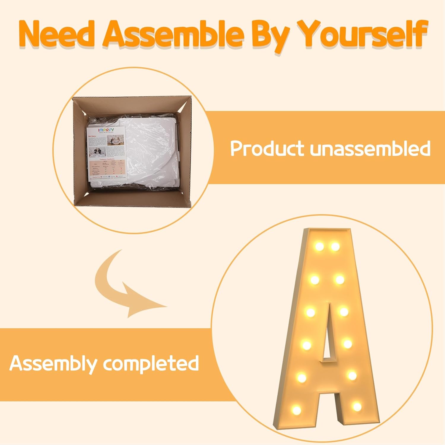 - Assembly Required: Our large marquee letters is made from foam board and easy to assemble with our splicing mode. Just follow the numbered instructions to align and insert the bottom plate, and reinforce it with a hot glue gun. Then, you're done!