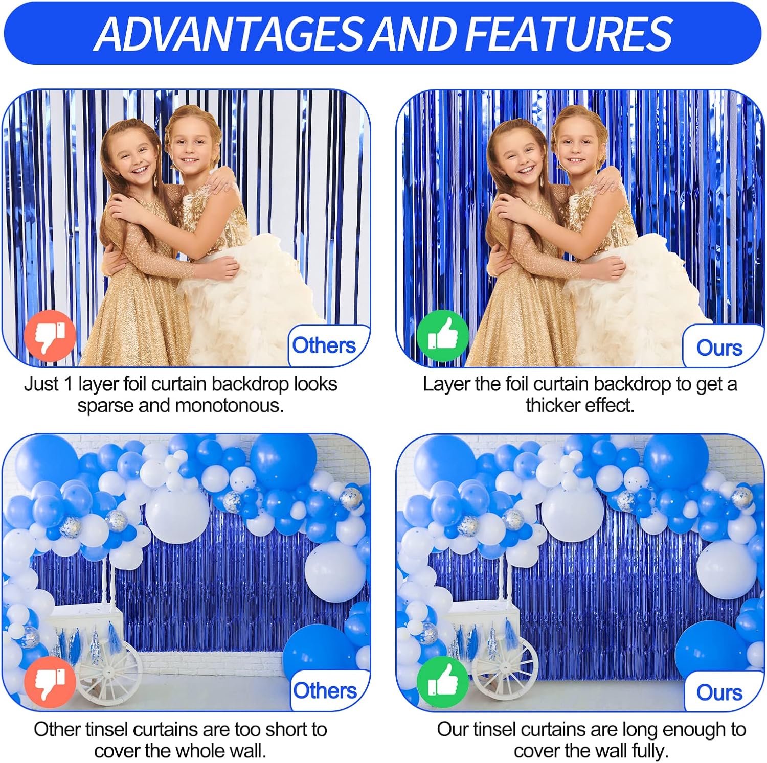 Crosize 4 Pack 3.3 x 9.9 ft Dark Blue Foil Fringe Curtains Party Decorations, Blue Tinsel Curtain Backdrop for Parties, Door Streamers, Glitter Streamer Fringe Backdrop for Birthday Decoration