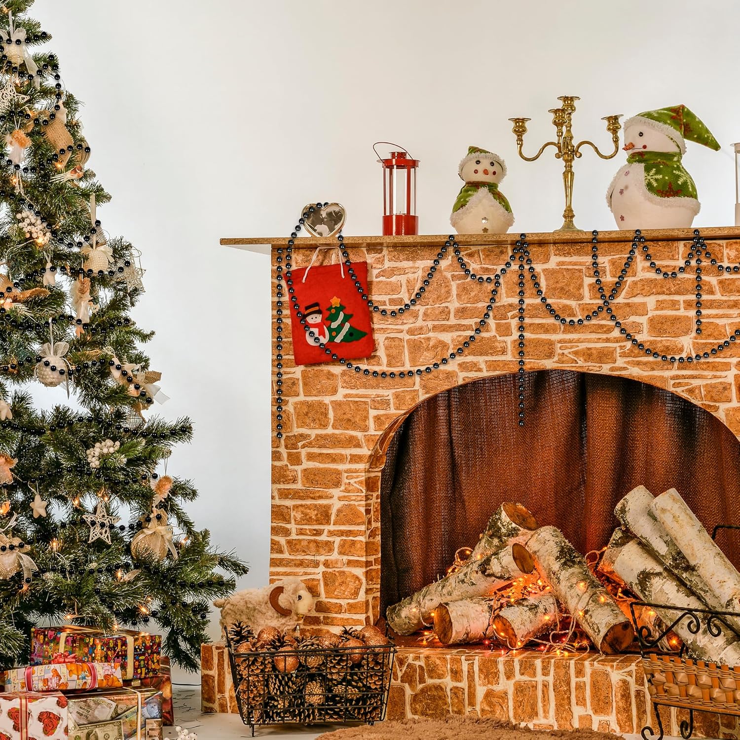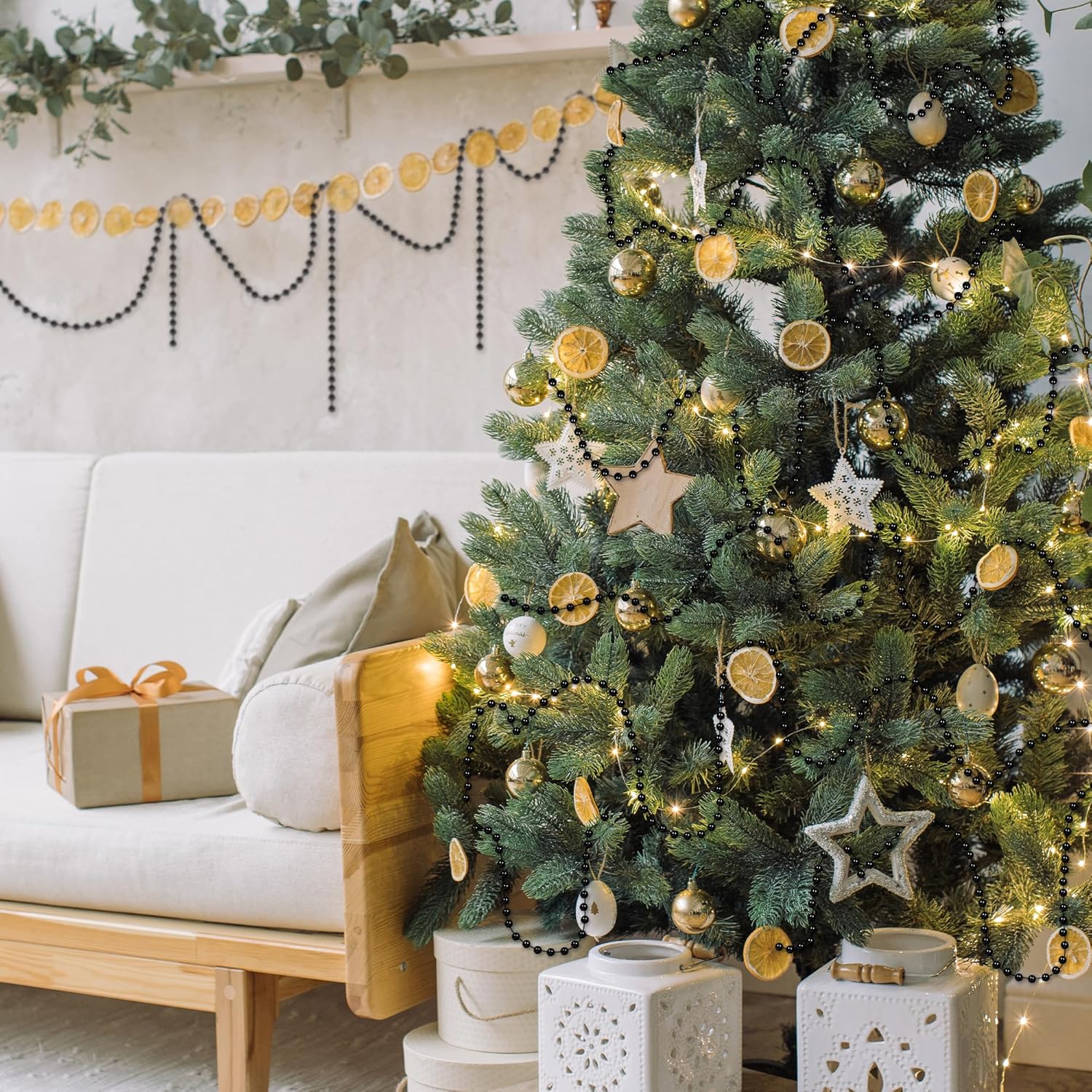 100 Feet Garland for Christmas Tree, Black Christmas Beads Decorations, Xmas Tree Decorations Artificial Pearl Garland Chain for Home Fireplace Curtains Decor Xmas Party Decor
