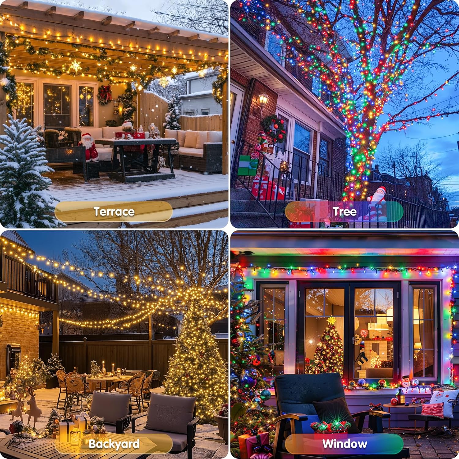 - Waterproof & Safety: We can't tell if it will rain on Christmas, so let's prepare a waterproof outdoor solar Christmas lights. The panic is all someone else's! All components of our lights, including light beads, light wires, and solar panels are IP44 waterproof, so no worries about the weather. Besides, color changing lights are solar powered which avoid short circuits and fires