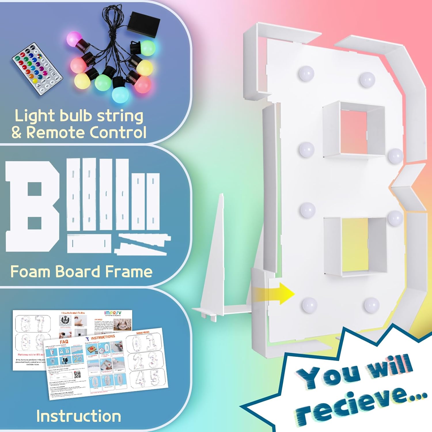 imprsv 3FT Colorful Marquee Light Up Letters B, 18 Colors Large Light up Letters Alphabet Sign with Remote, Big Marry Me Sign, Birthday Party Decorations Baby Shower Anniversary Wedding Decoration