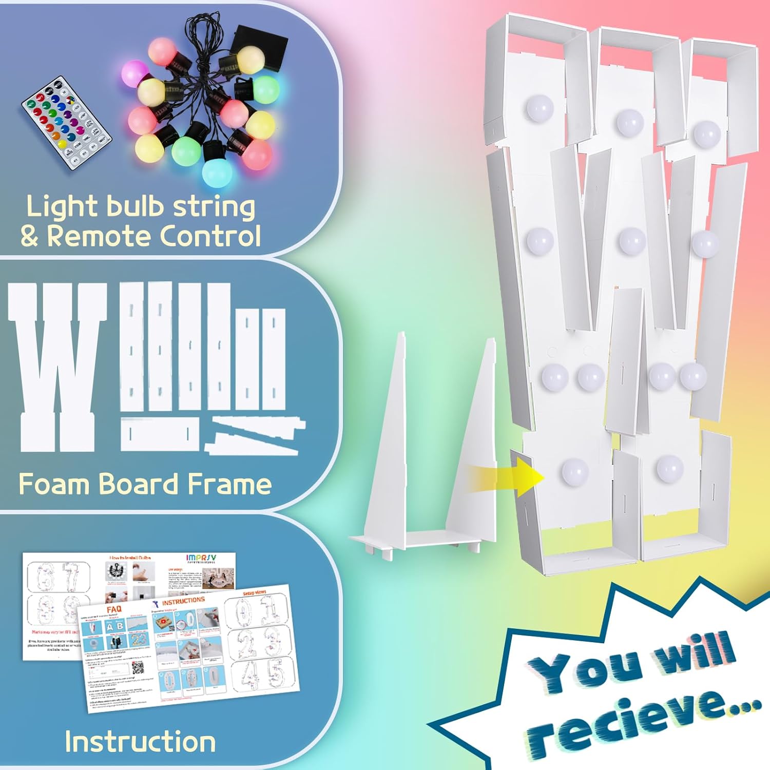 imprsv 4FT Colorful Marquee Light Up Letters W, 18 Colors Light Up Sign Alphabet Sign with Remote, One Letters First Birthday, Large Letters for Birthday Engagement Anniversary Wedding Party Decor