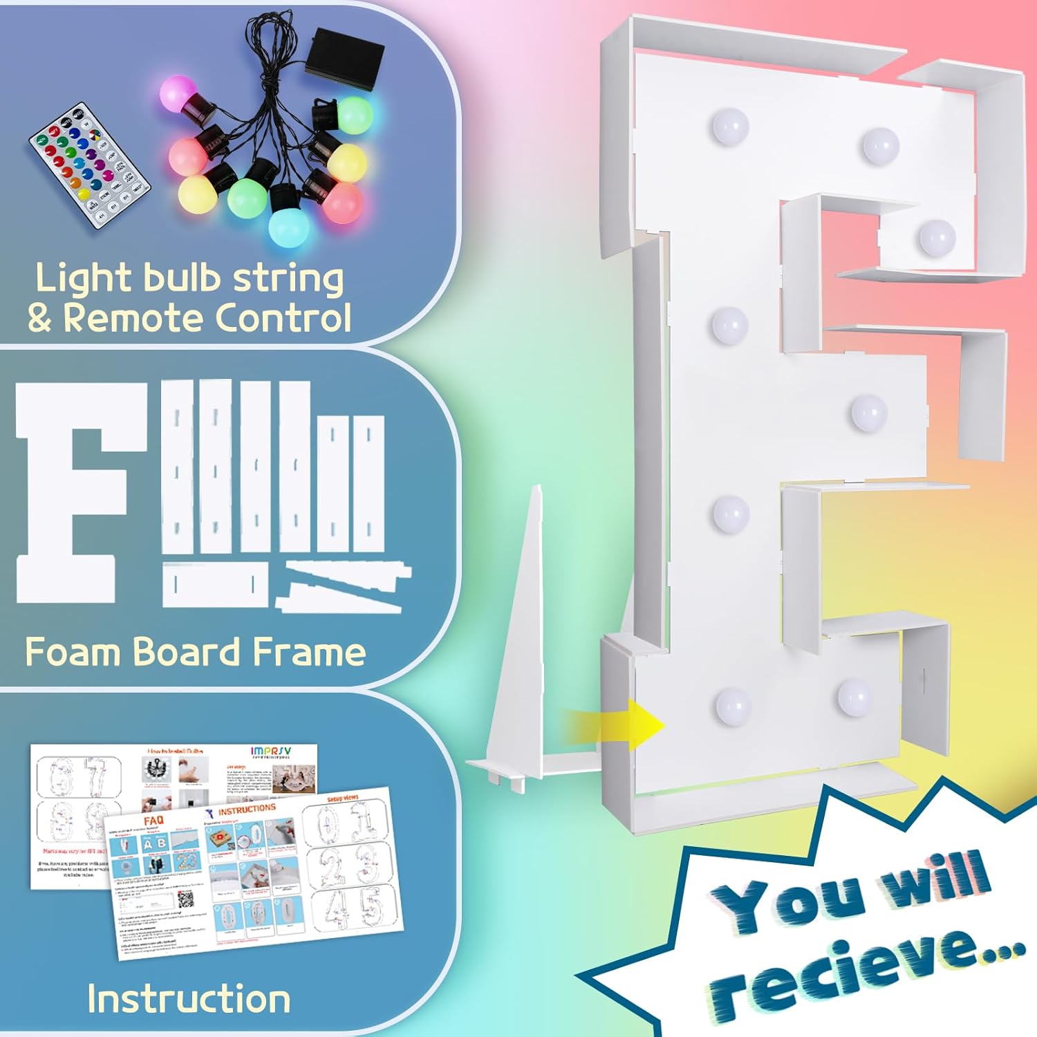 imprsv 3FT Colorful Marquee Light Up Letters F, 18 Colors Large Light up Letters Alphabet Sign with Remote, Big Marry Me Sign, Birthday Party Decorations Baby Shower Anniversary Wedding Decoration
